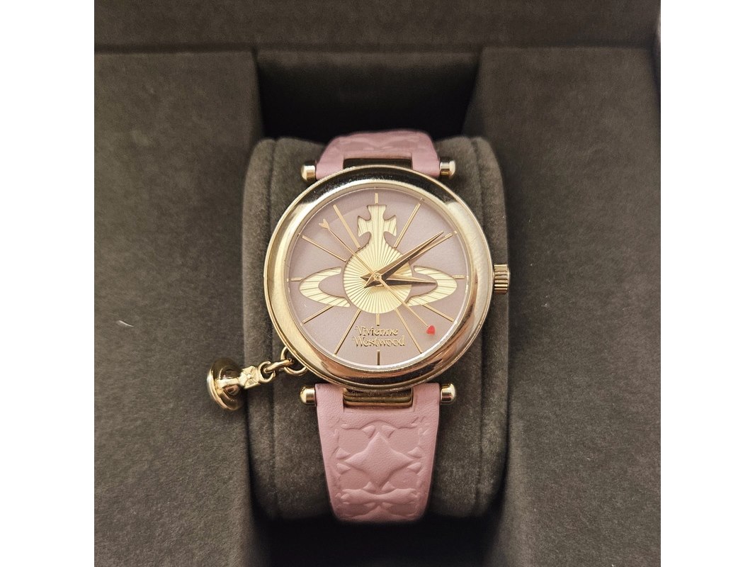 Product: Vivienne Westwood VV006PKPK dameshorloge Afmeting: 32mm Conditie: Gebruikt Specificaties: Quartz uurwerk loopt goed. Merk: Vivienne Westwood. Model: VV006PKPK. Heeft gebruikssporen. Inclusief doos, omdoos, en papieren.