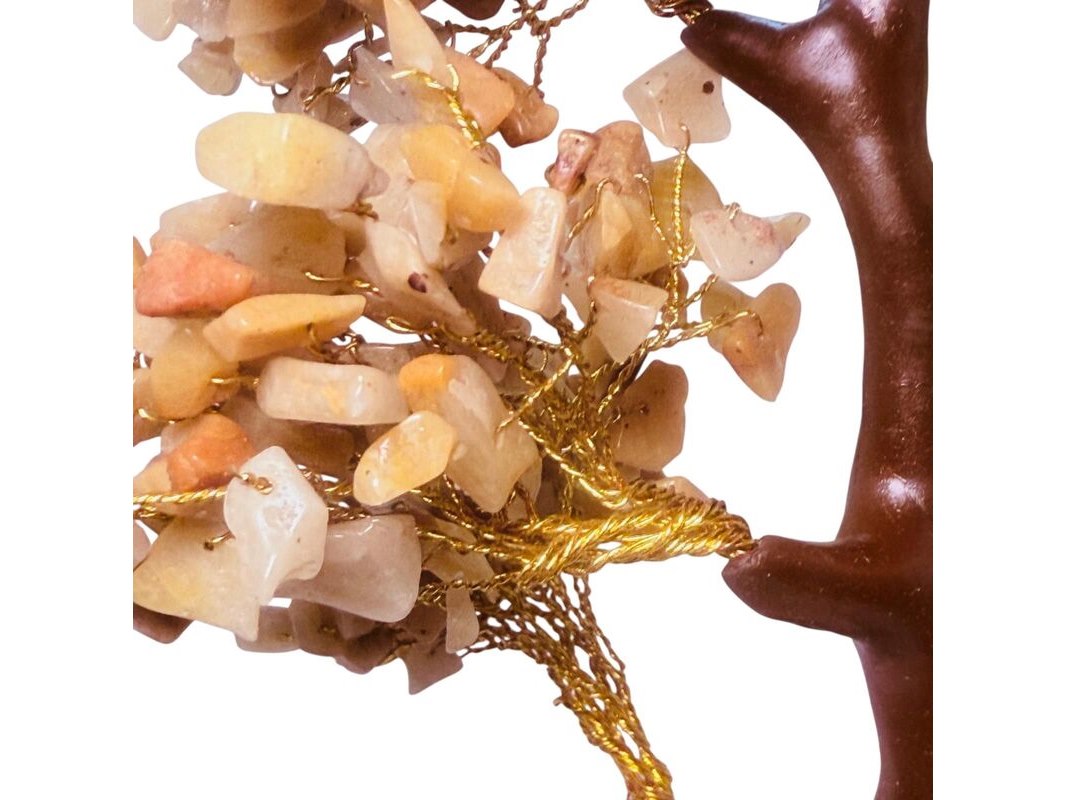 Goudkleurige boom sculptuur - gedecoreerd met authentieke citrine stenen