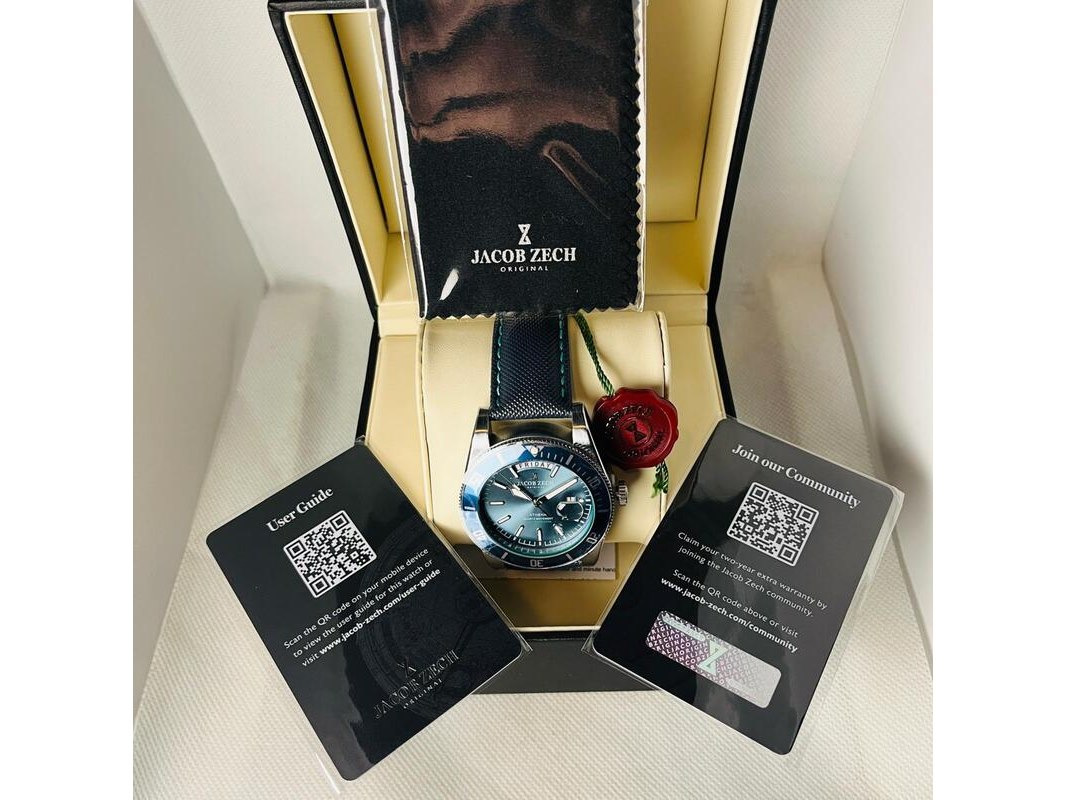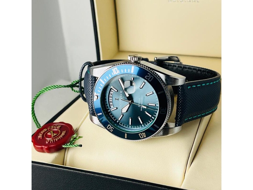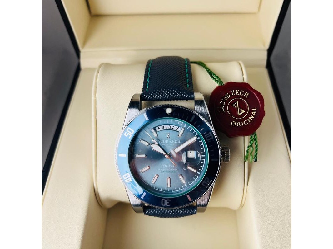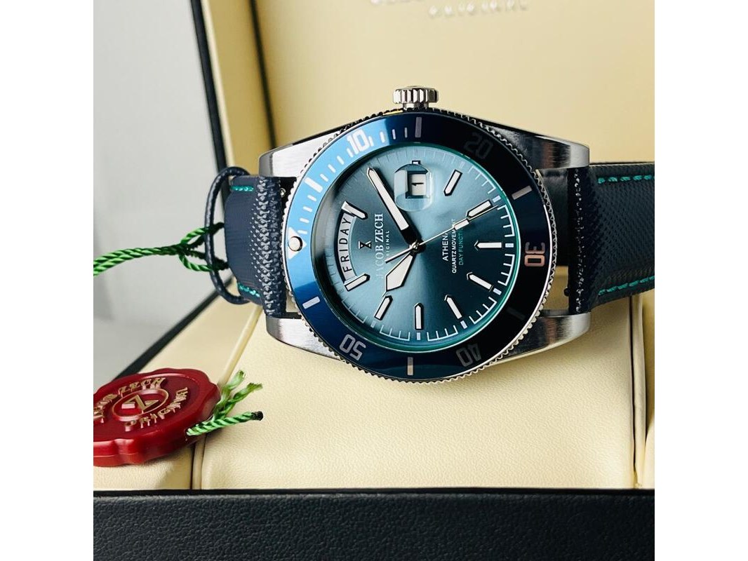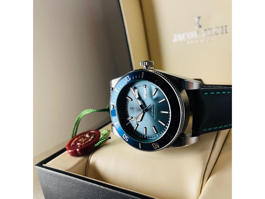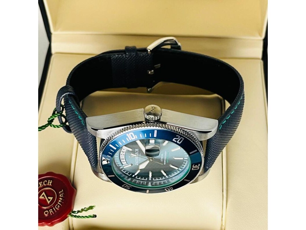 Product: Herenhorloge Jacob Zech Athena - Seiko uurwerk Afmeting: 44mm Conditie: Nieuw Specificaties: Nieuw, als full set aangeboden. Hattori Seiko VD53 uurwerk.