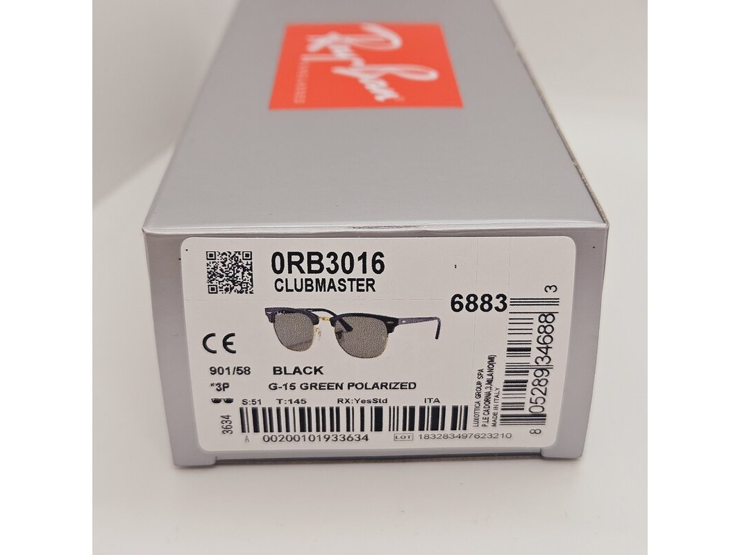 Product: Rayban zonnebril Clubmaster black green polarized Conditie: Nieuw Specificaties: Full set met doos, papieren en etui.