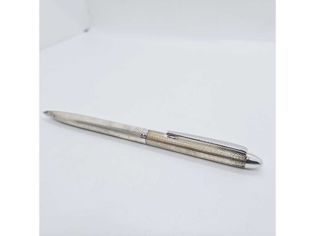 Product: Massieve zilveren balpen - Montblanc Barleycorn model Conditie: Nieuw Specificaties: Materiaal: 100% massief 925 zilver. Zilveren balpen van een Duits merk in een klassieke Barleycorn model o.a. bekend van Montblanc. Conditie: Nieuw uit oud winkelvoorraad.