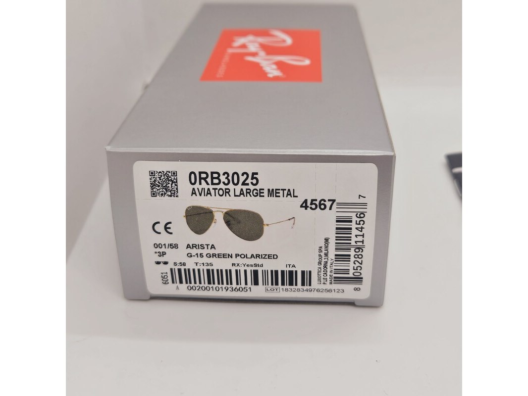 Product: Rayban zonnebril Aviator large metal arista green polarized Conditie: Nieuw Specificaties: Full set met doos, papieren en etui.