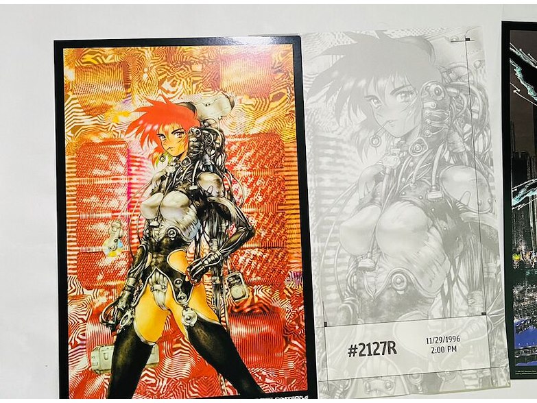 Product: Manga Masume Shirow - Lithografische kunstwerken Conditie: Nieuw Specificaties: Vintage Manga (Ghost in a shell 1995) - 1st edition offset lithografische kunstwerken. 6 meesterwerken van Manga artiest Masume Shirow, inclusief preview bladen.