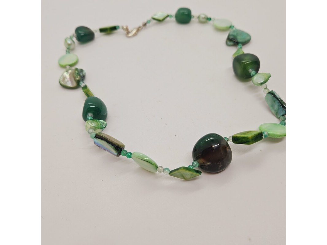 Collier zoetwater parels, gepolijst parelmoer en amber