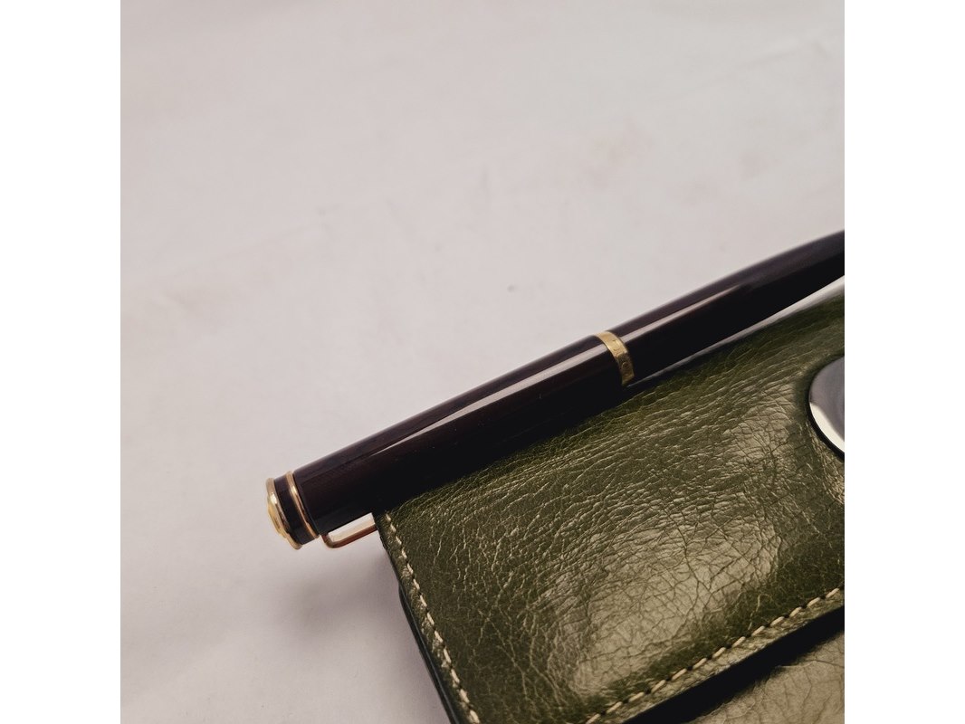 Product: Elysee Capitol 18kt GP balpen inclusief leren Claudio Ferrici notitieboek Conditie: Nieuw Specificaties: 18kt goldplated nib en frills. Inclusief leren Claudio Ferrici notitieboek. In brown marble uitvoering.