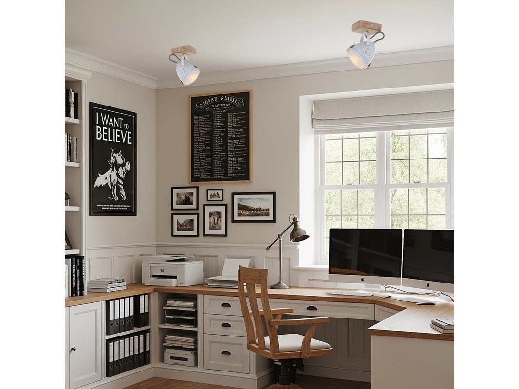 Merk: Mexlite Product: Plafond of wand spot Michelle Kleur: wit, licht bruin Materiaal: metaal, hout, elektronica Afmeting: 12 x 18 x 12 BouwJaar: 2025 Conditie: nieuw Specificaties: Artikelnummer: 1703W Kleur: wit met hout Fitting: GU10 Inclusief lichtbron: LED 7 watt, dim to warm Afmetingen: kap diameter 11 cm, hoogte 20 cm
