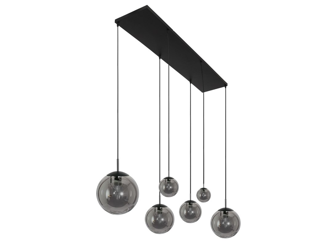 Merk: Steinhauer Product: Hanglamp Bollique Kleur: zwart, smoke Materiaal: metaal, glas, elektronica Afmeting: 120 x 25 x 160 BouwJaar: 2025 Conditie: nieuw Specificaties: Artikelnummer: 3499ZW Kleur: zwart Aantal lichtpunten: 6 Fitting: 6 x E27 Uitvoering: smoke mirror glazen bollen in diverse formaten