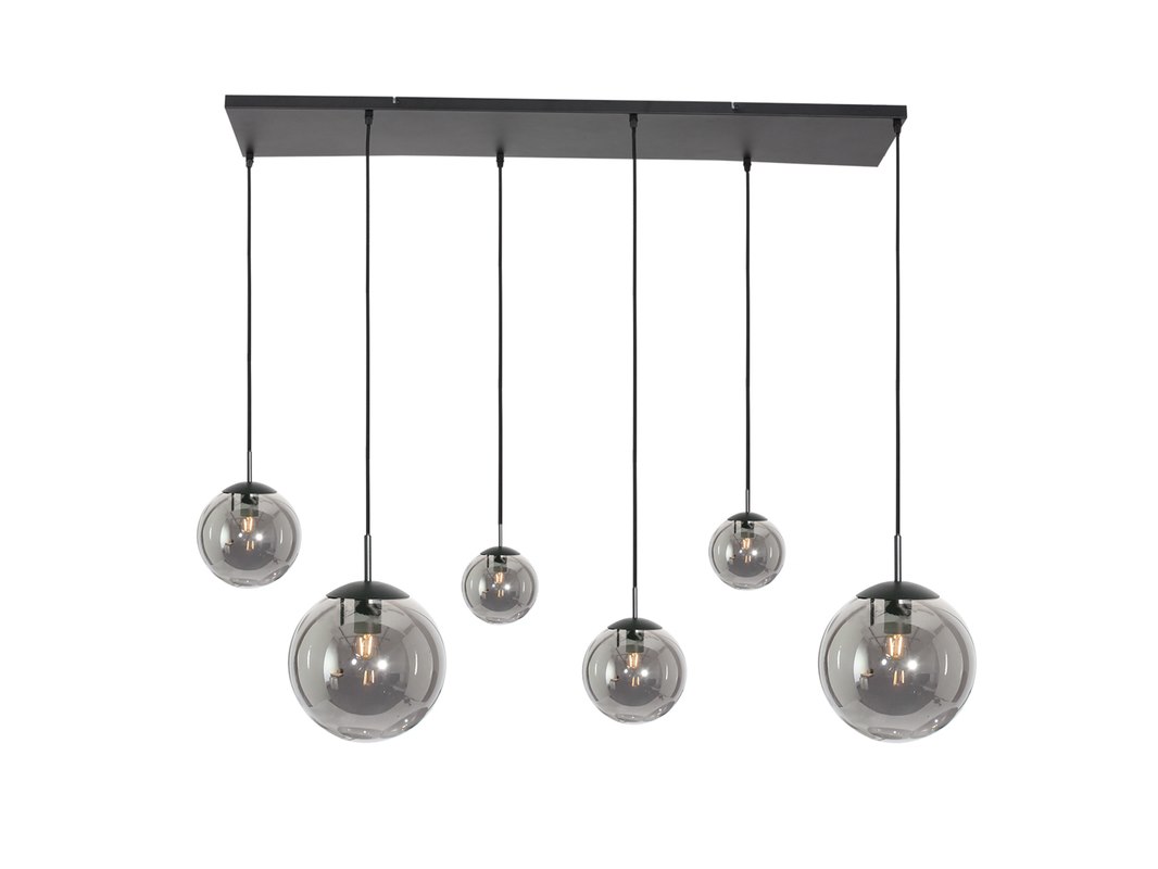Merk: Steinhauer Product: Hanglamp Bollique Kleur: zwart, smoke Materiaal: metaal, glas, elektronica Afmeting: 120 x 25 x 160 BouwJaar: 2025 Conditie: nieuw Specificaties: Artikelnummer: 3499ZW Kleur: zwart Aantal lichtpunten: 6 Fitting: 6 x E27 Uitvoering: smoke mirror glazen bollen in diverse formaten