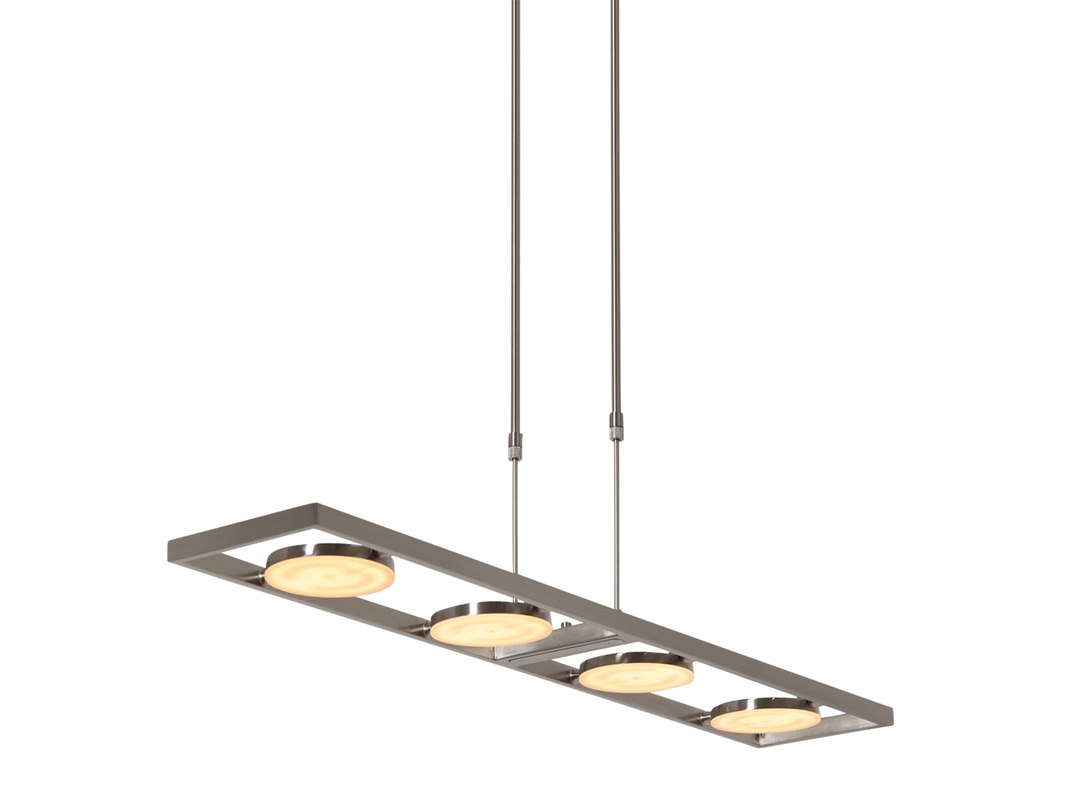 Merk: Steinhauer Product: Hanglamp Soleil Staal Kleur: staal, grijs, wit Materiaal: metaal, kunststof, elektronica Afmeting: 90 x 20 x 122 BouwJaar: 2025 Conditie: nieuw Specificaties: Artikelnummer: 3516ST Kleur: staal Aantal lichtpunten: 4 Lichtopbrengst: 4000 lumen Afmeting: breedte 90 cm