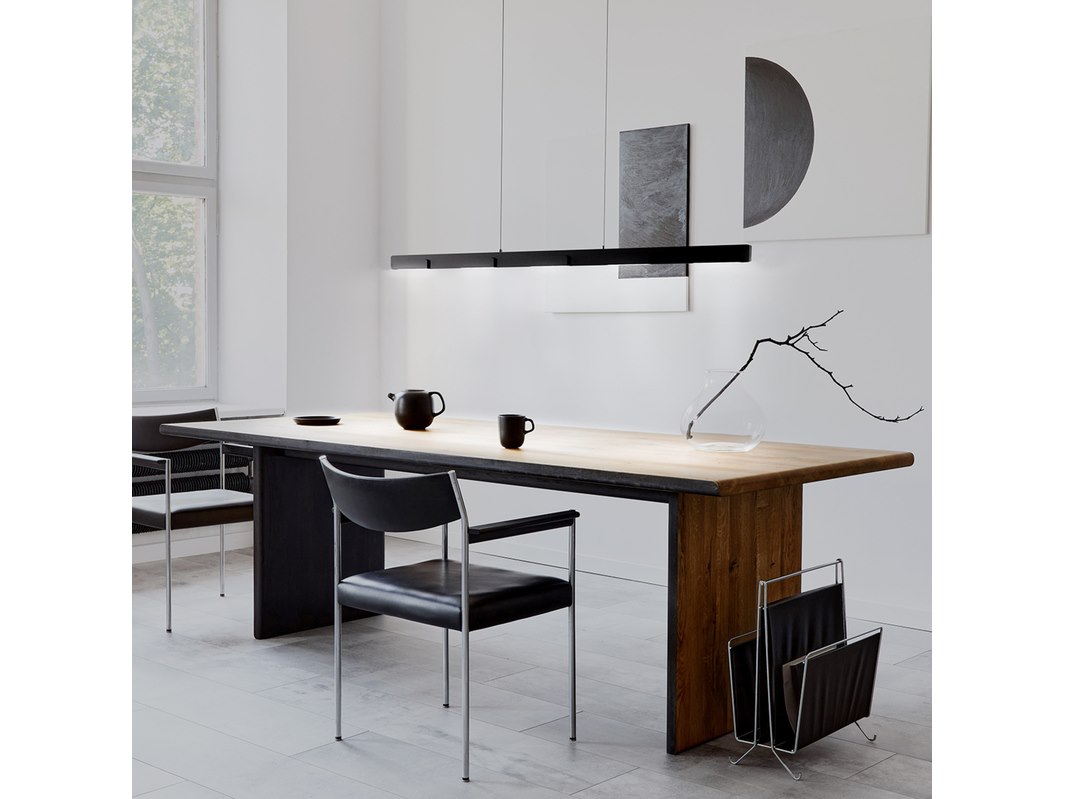 Merk: Steinhauer Product: Hanglamp Bloc Kleur: zwart Materiaal: metaal, elektronica Afmeting: 120 x 9,5 x 130 BouwJaar: 2025 Conditie: nieuw Specificaties: Artikelnummer: 3296ZW Kleur: zwart Lichtbron: vervangbare LED, 2 x 6W boven en 5 x 6W onder Lichtopbrengst: 4200 lumen, 2700 Kelvin Afmetingen: lengte 120 cm, hoogte verstelbaar van 10 tot 130 cm