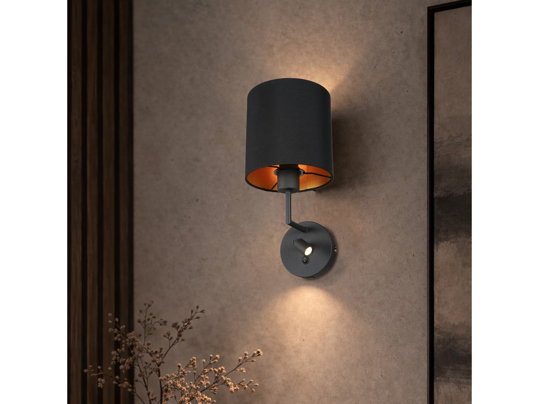 Merk: Mexlite Product: Wandlamp Noor Zwart Kleur: zwart Materiaal: metaal, linnen, elektronica Afmeting: 20 x 20 x 65 BouwJaar: 2025 Conditie: nieuw Specificaties: Artikelnummer: 1562ZW Kleur: Zwart Type lamp: wandlamp Lichtbron 1: verstelbaar leeslampje Lichtbron 2: E27-fitting voor bovenlicht Extra functie: voorzien van USB-lader