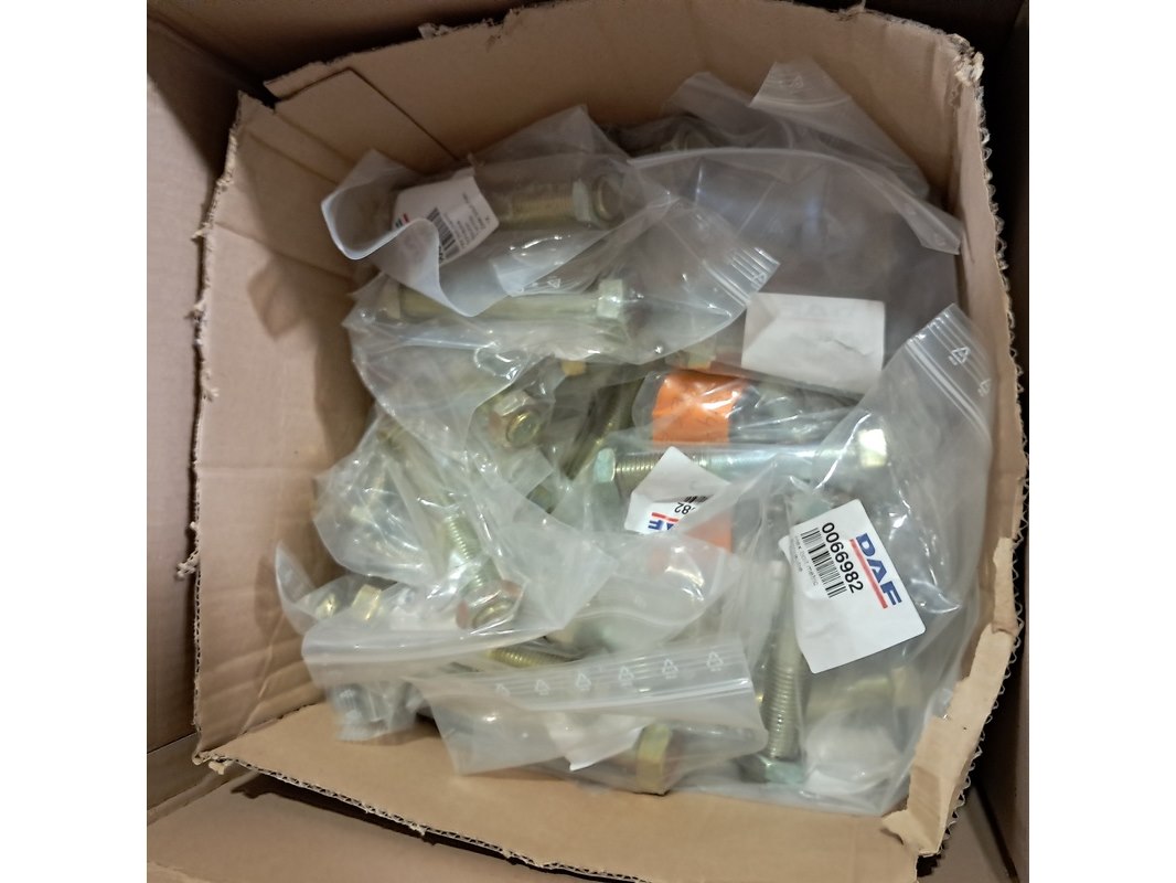 Merk: o.a Daf Product: Diverse onderdelen en ijzerwaren Afmeting: Diverse maten Conditie: gebruikt Specificaties: Technische staat en compleetheid onbekend. Exclusief palletkist