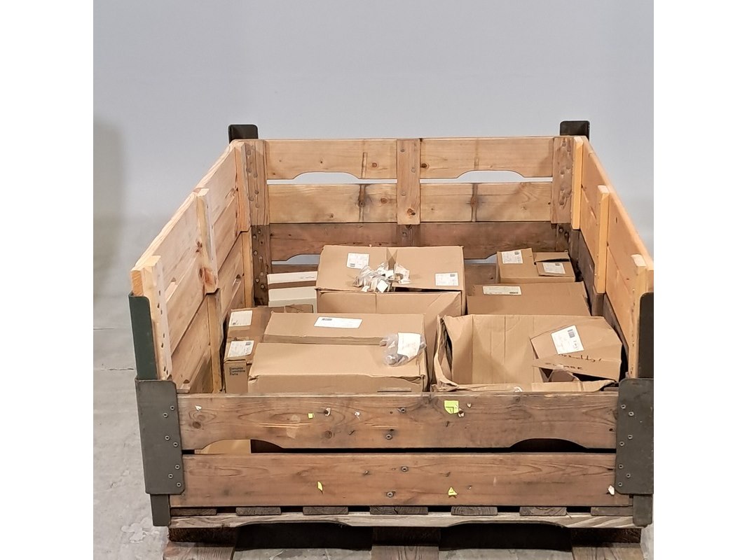 Product: Partij diverse onderdelen en ijzerwaren Afmeting: Diverse maten Conditie: gebruikt Specificaties: Technische staat en compleetheid onbekend. Exclusief palletkist