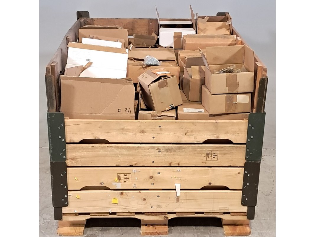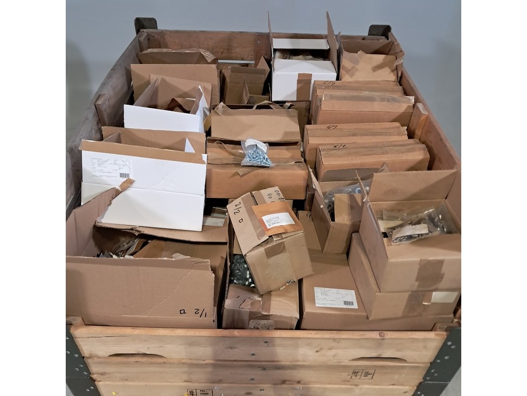 Product: Diverse onderdelen en ijzerwaren Afmeting: Diverse maten Conditie: gebruikt Specificaties: Technische staat en compleetheid onbekend. Exclusief palletkist.