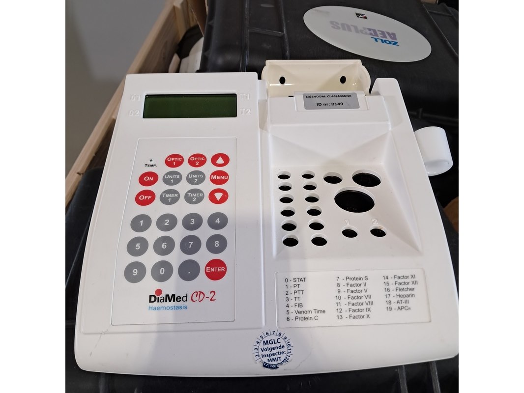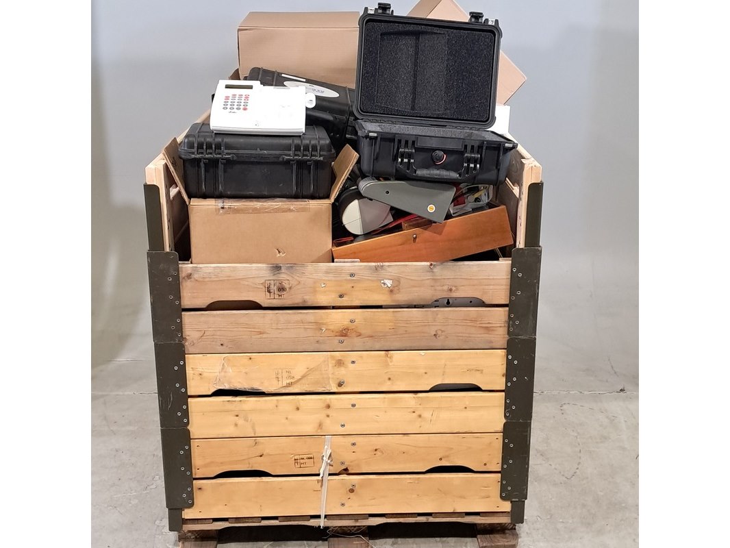 Merk: o.a DiaMed, Argus Product: Diverse medische apparatuur en koffers Afmeting: HxBxD ca. 67x118x79 cm. Conditie: gebruikt Specificaties: Bestaande uit diverse apparatuur. Technische staat en compleetheid onbekend. Exclusief palletkist