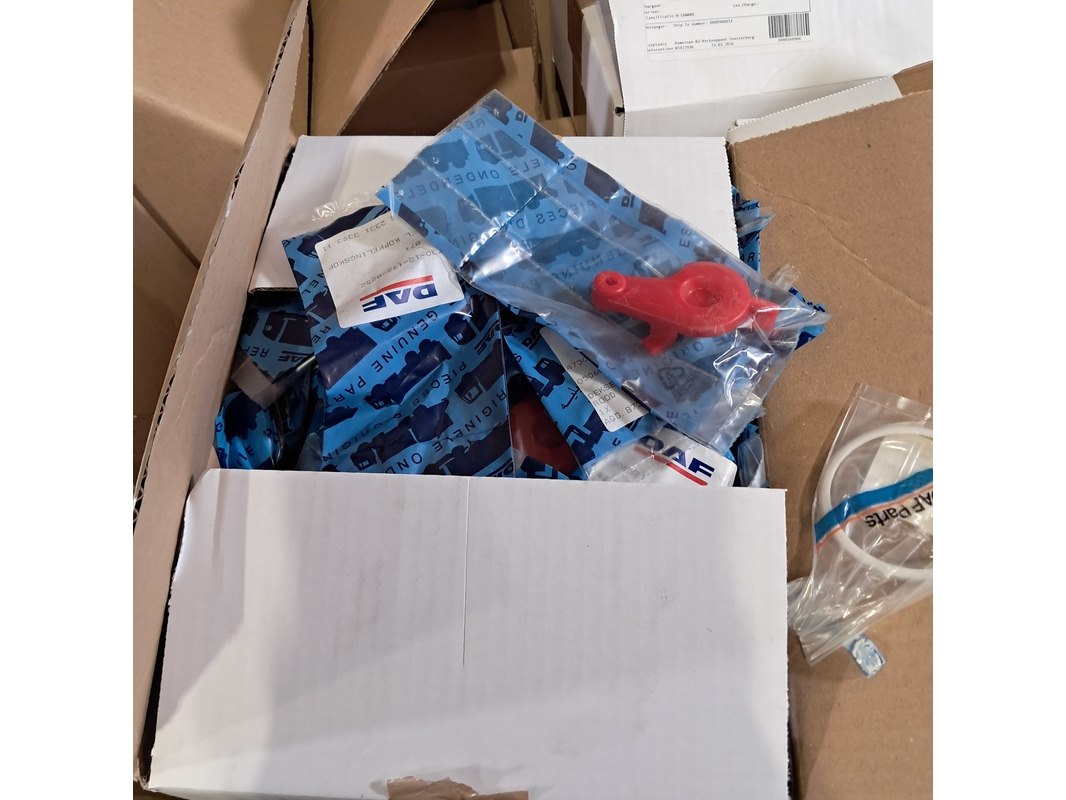 Merk: o.a Daf Product: Partij diverse onderdelen en ijzerwaren Afmeting: Diverse maten Conditie: gebruikt Specificaties: Technische staat en compleetheid onbekend. Exclusief palletkist.