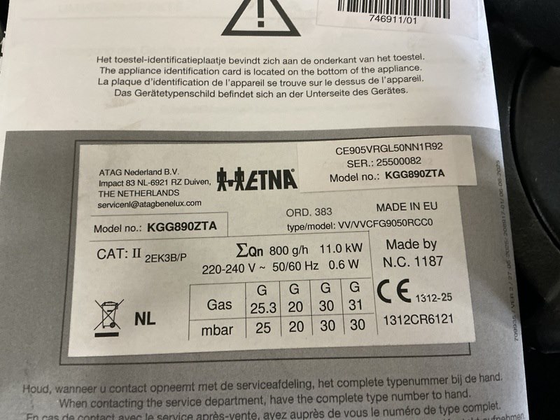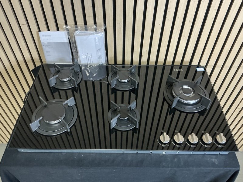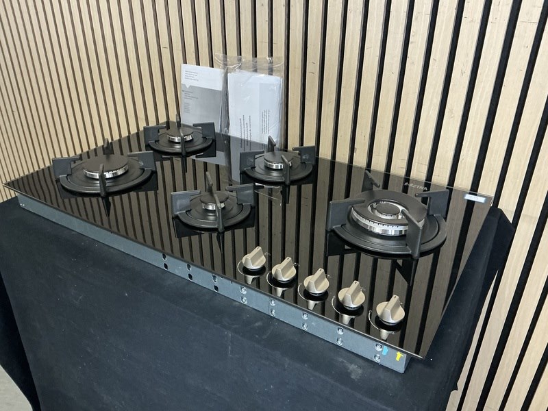 Merk: ETNA Product: Inbouw gas-op-glaskookplaat Afmeting: 90cm Conditie: nieuw