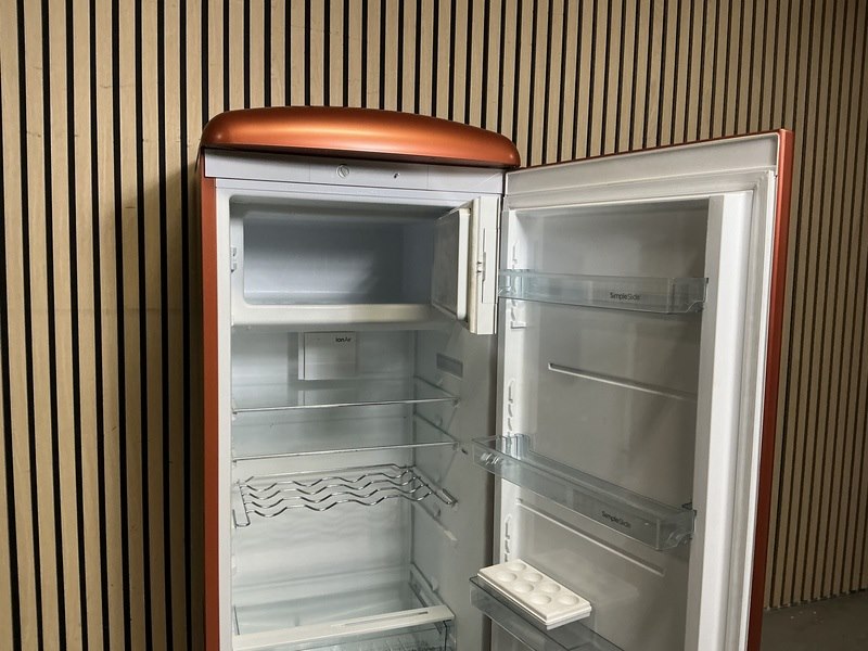 Merk: ETNA Product: Vrijstaande retro koelkast met vriesvak Afmeting: 60x64x154cm Conditie: gebruikt