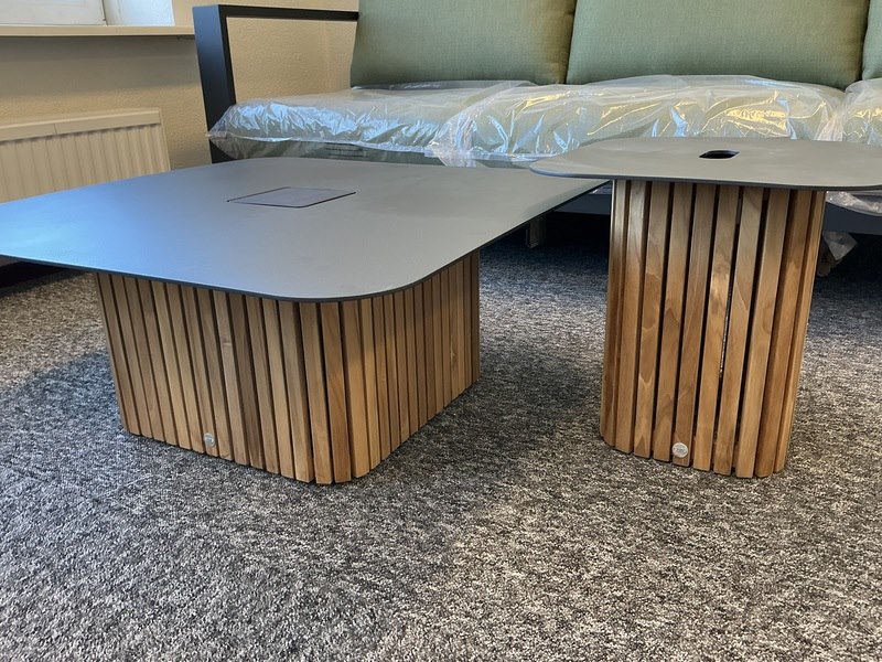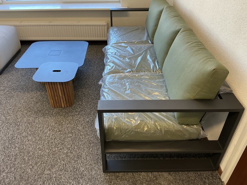 Merk: Suns Product: Lounge set Kleur: mat white Materiaal: aluminium Conditie: nieuw Specificaties: 3 zits lounge bank 245x92cm, lounge tafel met solar 80x80cm, lounge tafel 42x42cm