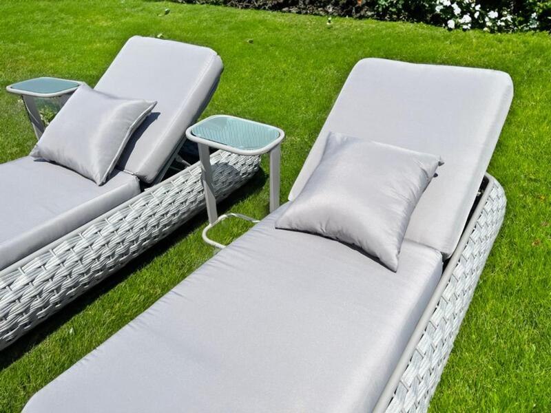 Merk: Vonato Product: Ligbedden Kleur: donker grijs Materiaal: Gepoedercoat aluminium frame Conditie: nieuw Specificaties: Aantal: 1 Merk: Vonato Productnaam: Ligbeddenset Type: DENVER-23-DG Kleur: Dark grey wicker, licht grijze kussens Model: 2-delige ligbeddenset Afmetingen: 2-delige set: 1* loungesize 200*68*32cm 1* side table 30*40*55cm Frame: Gepoedercoat aluminium frame Voorzien van: weerbestendig vlechtwerk