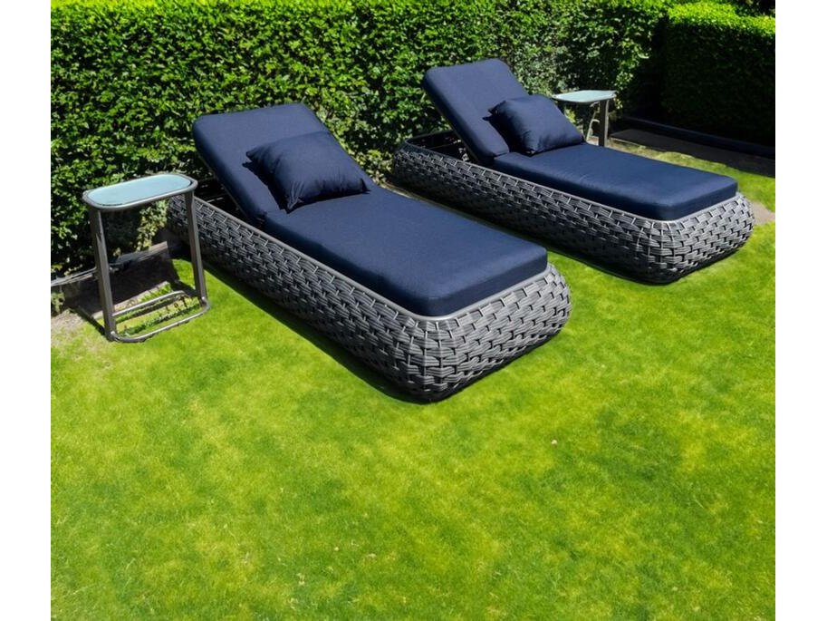 Merk: Vonato Product: Ligbedden Kleur: donker antraciet Materiaal: Gepoedercoat aluminium frame Conditie: nieuw Specificaties: Aantal: 1 Merk: Vonato Productnaam: Ligbeddenset Type: DENVER-23-DA Kleur: Dark antraciet wicker, licht grijze kussens Model: 2-delige ligbeddenset Afmetingen: 2-delige set: 1* loungesize 200*68*32cm 1* side table 30*40*55cm Frame: Gepoedercoat aluminium frame Voorzien van: weerbestendig vlechtwerk