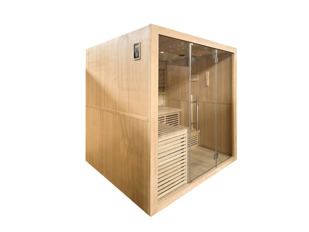 Merk: Vonato Product: Sauna Kleur: hout Materiaal: Hout met helder veiligheidsglas Conditie: nieuw Specificaties: Aantal: 1 Merk: Vonato Productnaam: Sauna Type: SMS-L101N Model: Prisma sauna met kachel Afmeting: 2200x2200x2100mm Verwarming: Kachel 6 kW Details: Dubbel plafond met sfeerverlichting - Achterwanden zijn voorzien van kleine lichte natuurstenen strips - Buitenzijde voorzien van houtnerf decoratie. Voorzien van: Isolatie - Helder veiligheidsglas - Hittebestendige deurknoppen - Ca. 20 kg. Lavastenen - Touchscreen Control Panel - Bluetooth integratie voor muziek met dubbele speaker (eenvoudig te bedienen via het Control Panel) - 3 Comfortabele zit/ligbanken - Houten emmer met scheplepel - Zandloper - Thermometer - Let op: Exclusief verlichting in de achterwand. Verpakking: Product bestaat uit 11 kartons: ca. 1 * 2200x2200x230mm - 1 * 2250x1230x230mm - 1 * 2030x1150x100mm - 1 * 2020x650x100mm - 1 * 2070x540x340mm - 1 * 2210x1190x220mm - 1 * 2220x1130x260mm - 1 * 400x300x140mm - 1 * 600x430x300mm - 1 * 350x310x300mm - 1 * 570x570x260mm