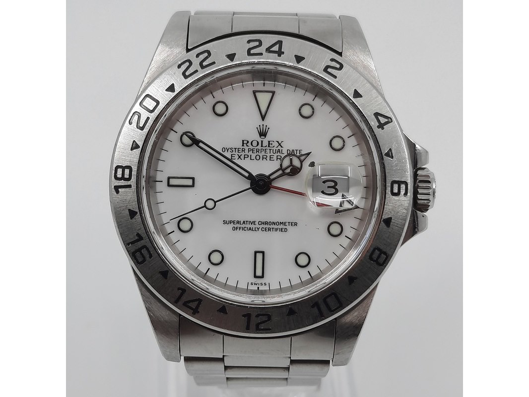 Merk: Rolex Product: Heren polshorloge Conditie: Gebruikt Specificaties: Een stalen heren polshorloge, Rolex Explorer 16570. Bouwjaar ca. 1998. Met witte wijzerplaat en stalen band. Geen doos en geen certificaat.