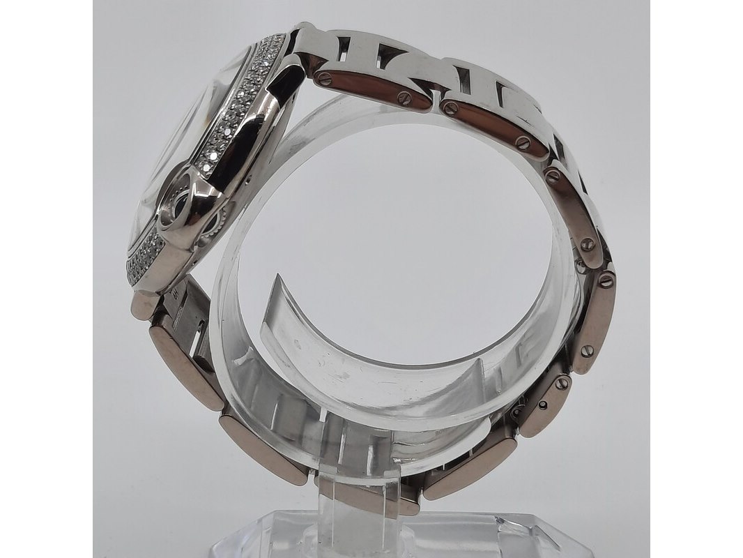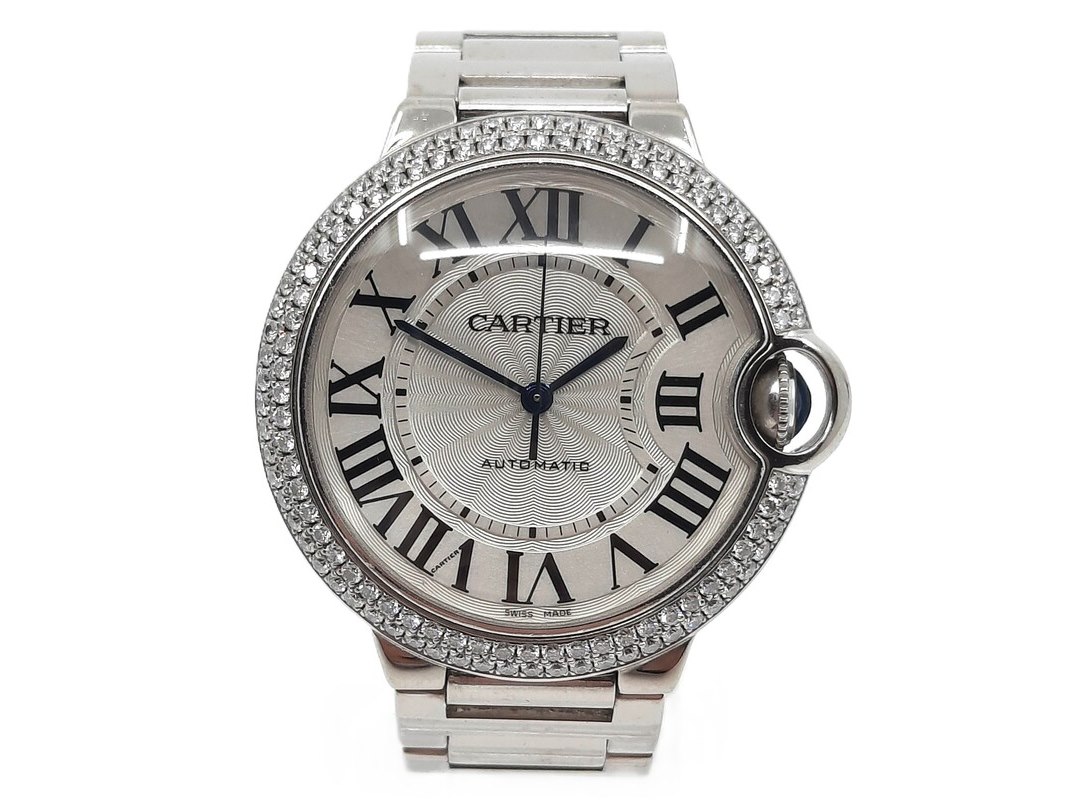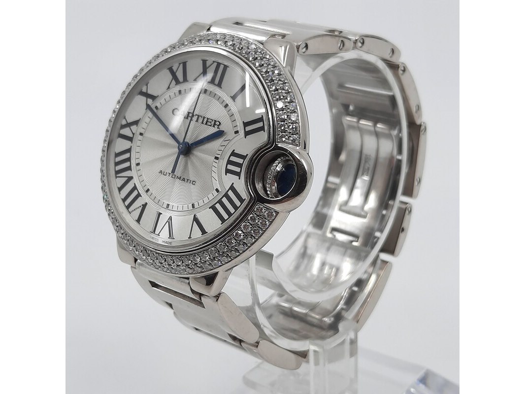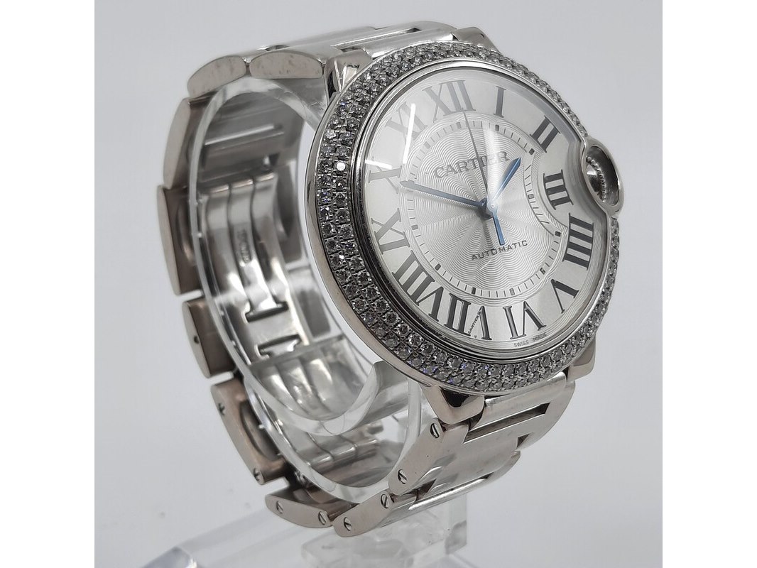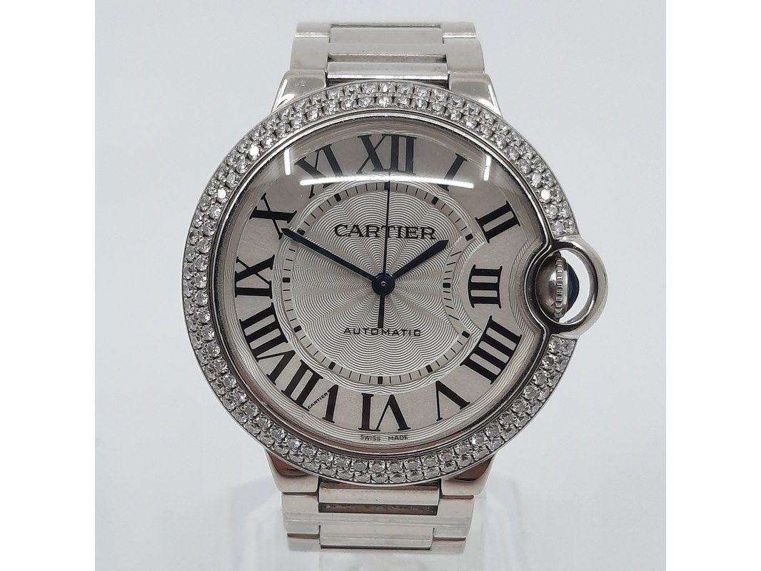 Merk: Cartier Product: Heren polshorloge Conditie: Gebruikt Specificaties: Een witgouden heren polshorloge, Cartier Ballon Bleu 3004. Met zilverwitte wijzerplaat, lunette bezet met twee rijen briljant geslepen diamanten en witgouden band. Gehalte ''750'' bruto gewicht ca. 143,6 gram. Geen doos en geen certificaat.