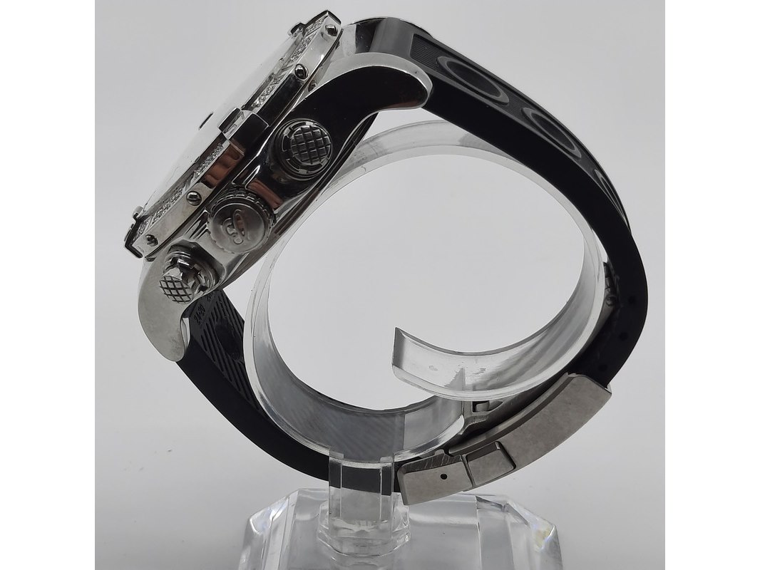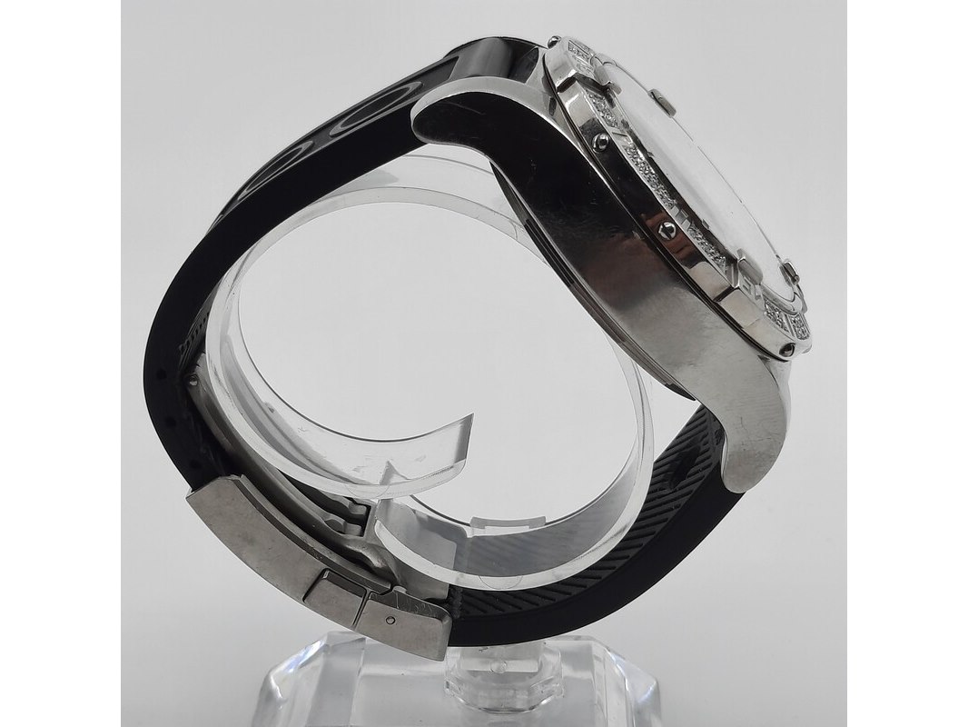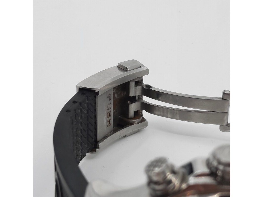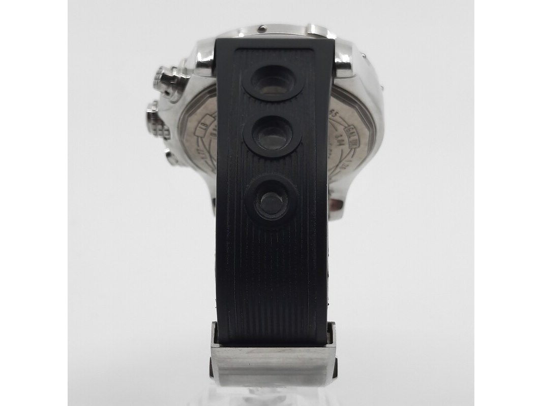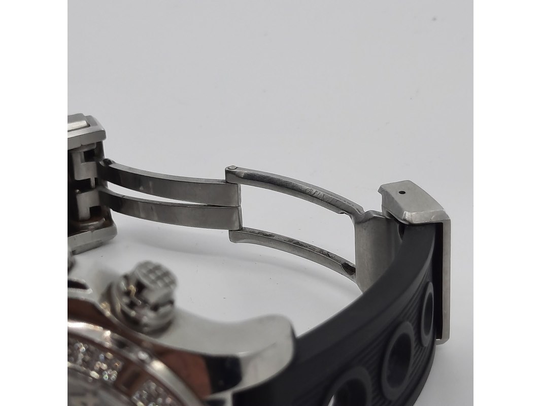Merk: Breitling Product: Heren polshorloge Conditie: Gebruikt Specificaties: Een stalen heren polshorloge, Breitling Super Avenger. Met witte wijzerplaat, 104 briljant geslepen diamantjes op de bezel, datum en chronograaf en rubberen band met stalen vouwsluiting. Geen doos en geen certificaat. Let op, Horlogekast is niet te opnenen!