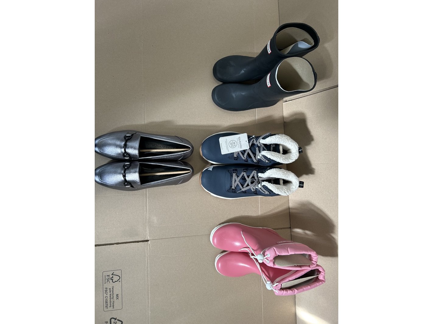 Merk: Jack Wolfskin, Marco Tozzi, Hunter Product: Partij Kleding Conditie: nieuw Specificaties: Hunter kids first classic Unisex Regenlaarzen - Maat 33 + MARCO TOZZI MT Soft Lining Dames Slipper - PEWTER - Maat 40 + + Jack Wolfskin Everquest Texapore Mid Snowboots voor Dames - dark blue / off-white - Maat 40
