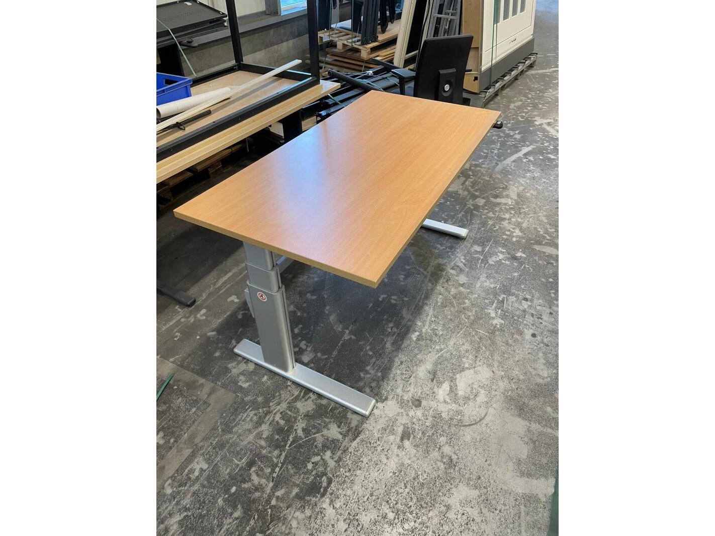 Product: Zit sta bureau Kleur: hout kleur Materiaal: metaal/hout Afmeting: 800x1600 Conditie: gebruikt Specificaties: Zit sta bureau op hoogte in te stellen met 4 geheugenstanden en een metalen onderstel