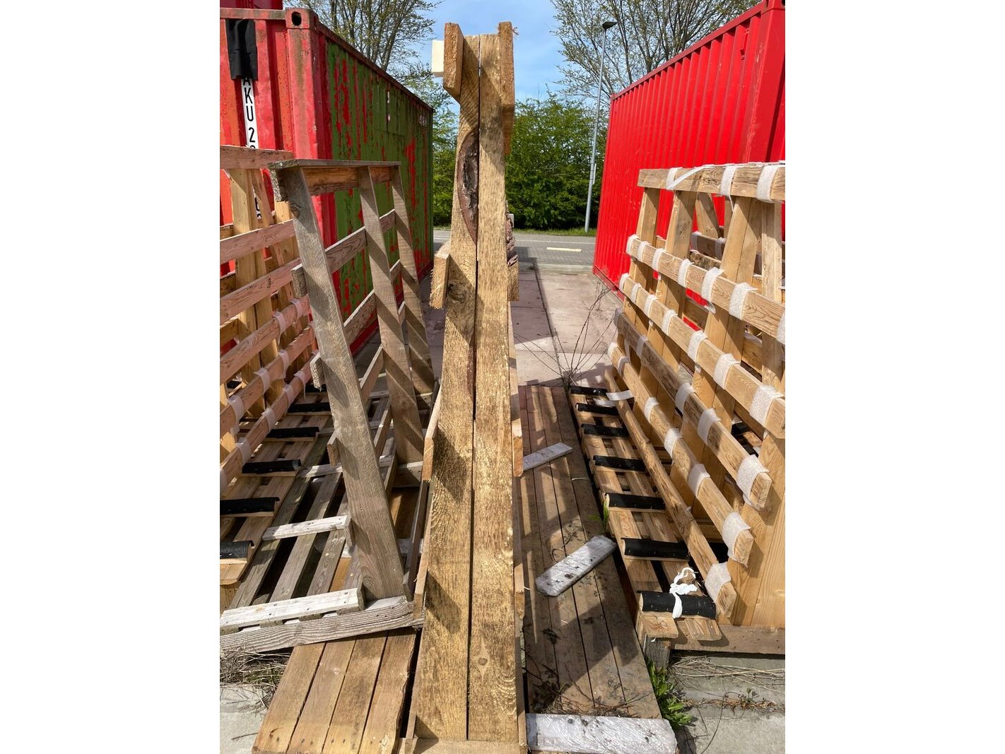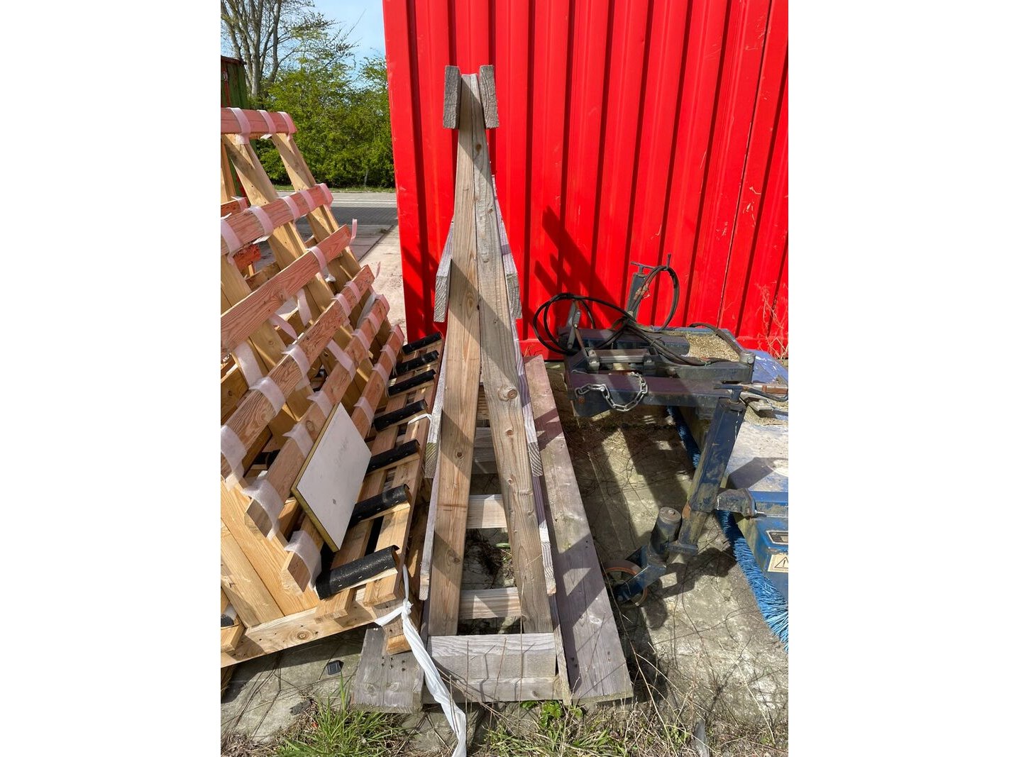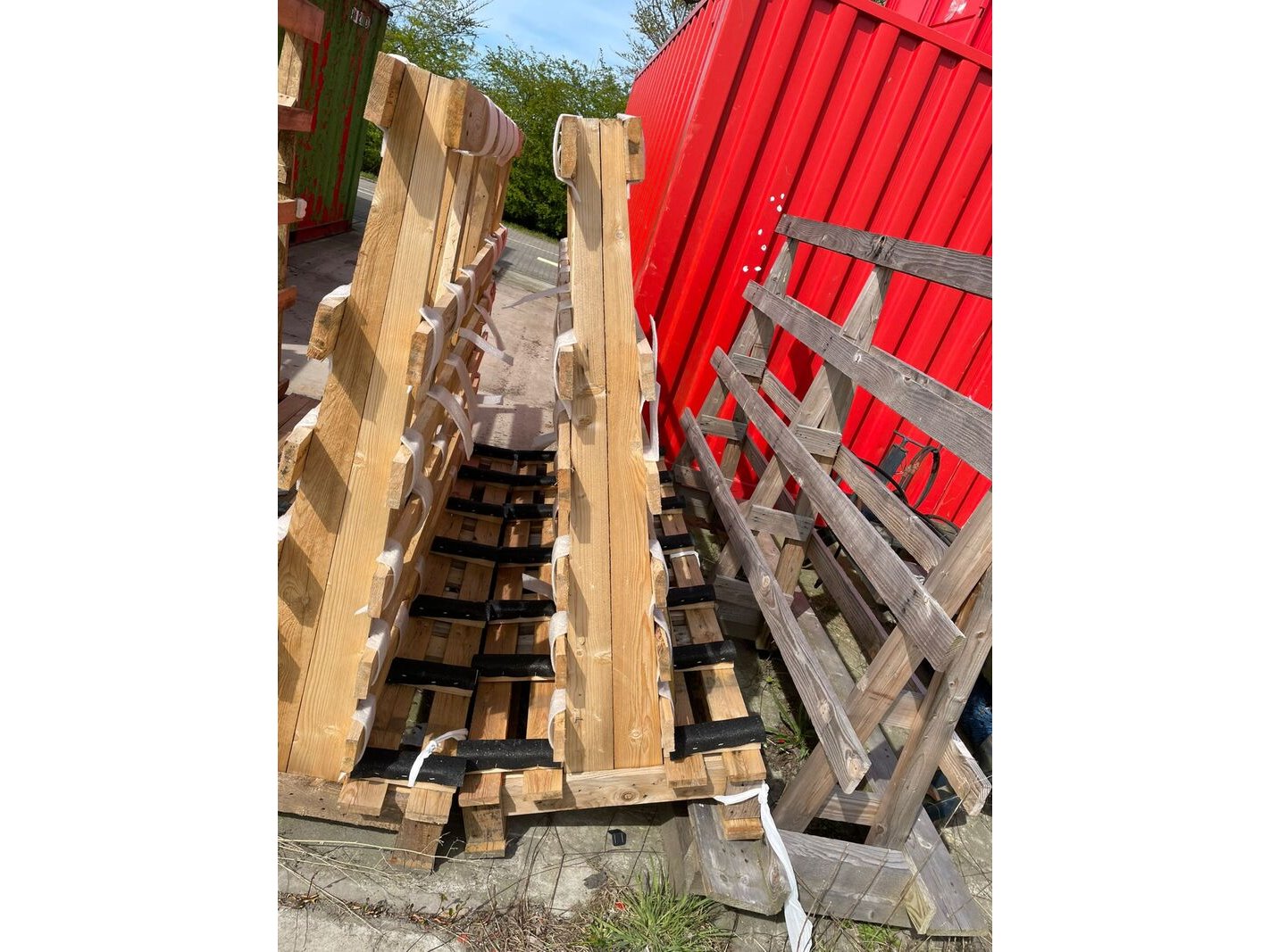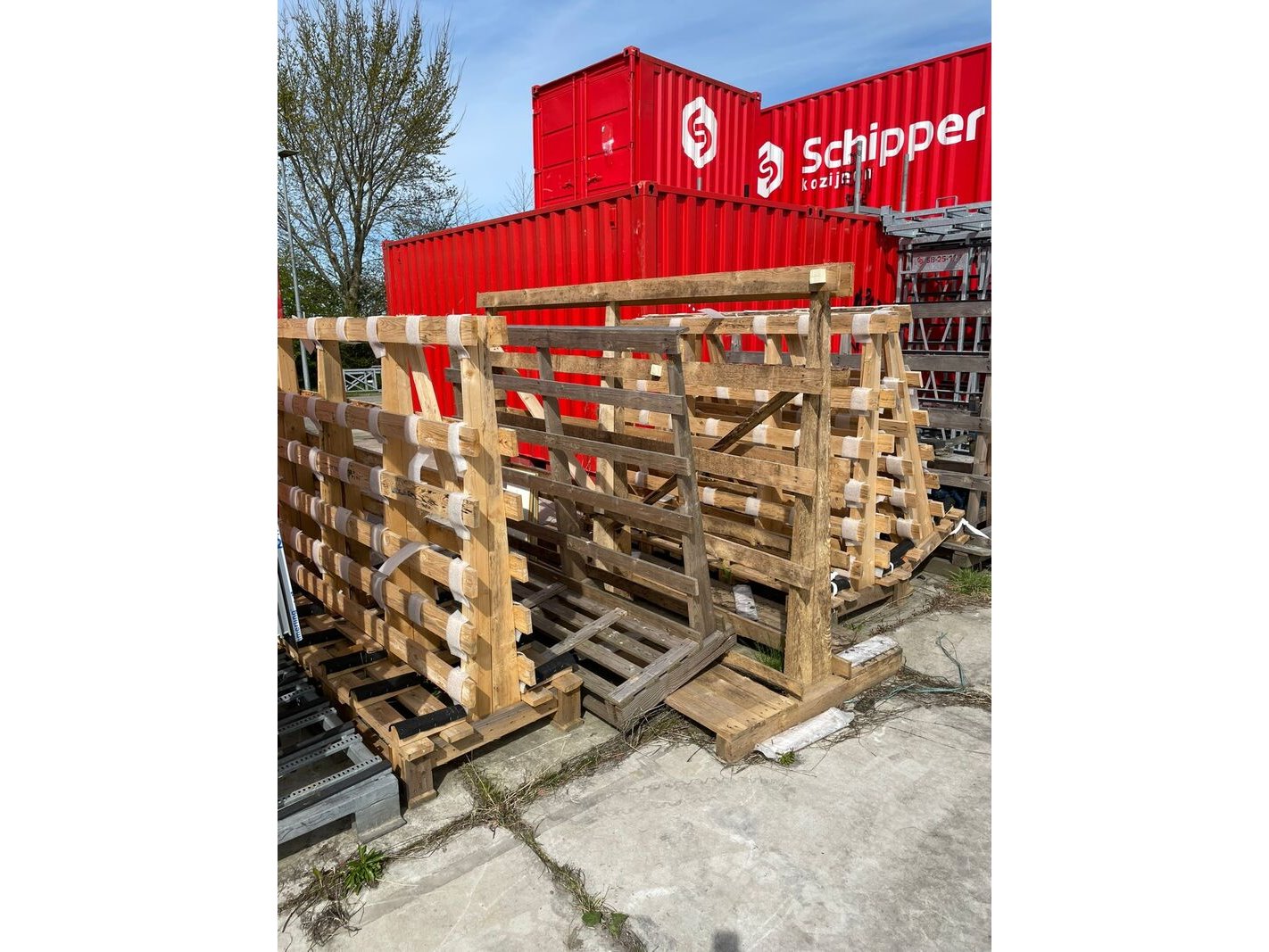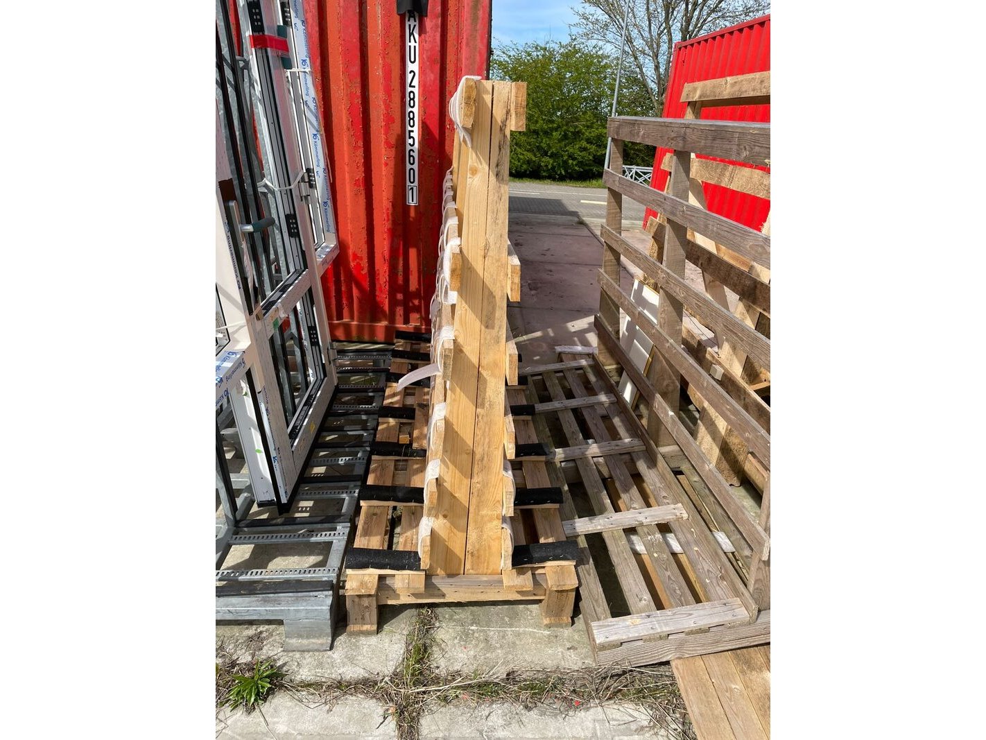 Product: Houten kozijn-/glasbokken Materiaal: hout Conditie: gebruikt Specificaties: Partij houten kozijn/glasbokken
