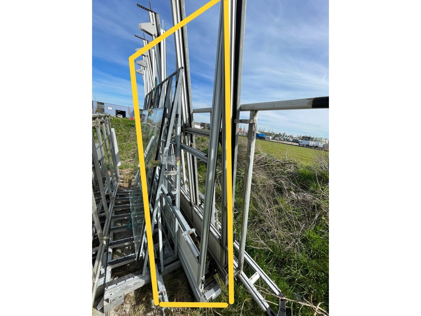 Product: Zij resteel Kleur: lichtgrijs Materiaal: aluminium Afmeting: 2950x2560 Conditie: gebruikt Specificaties: Zie laaste foto voor een afbeelding hoe het op een bus staat
