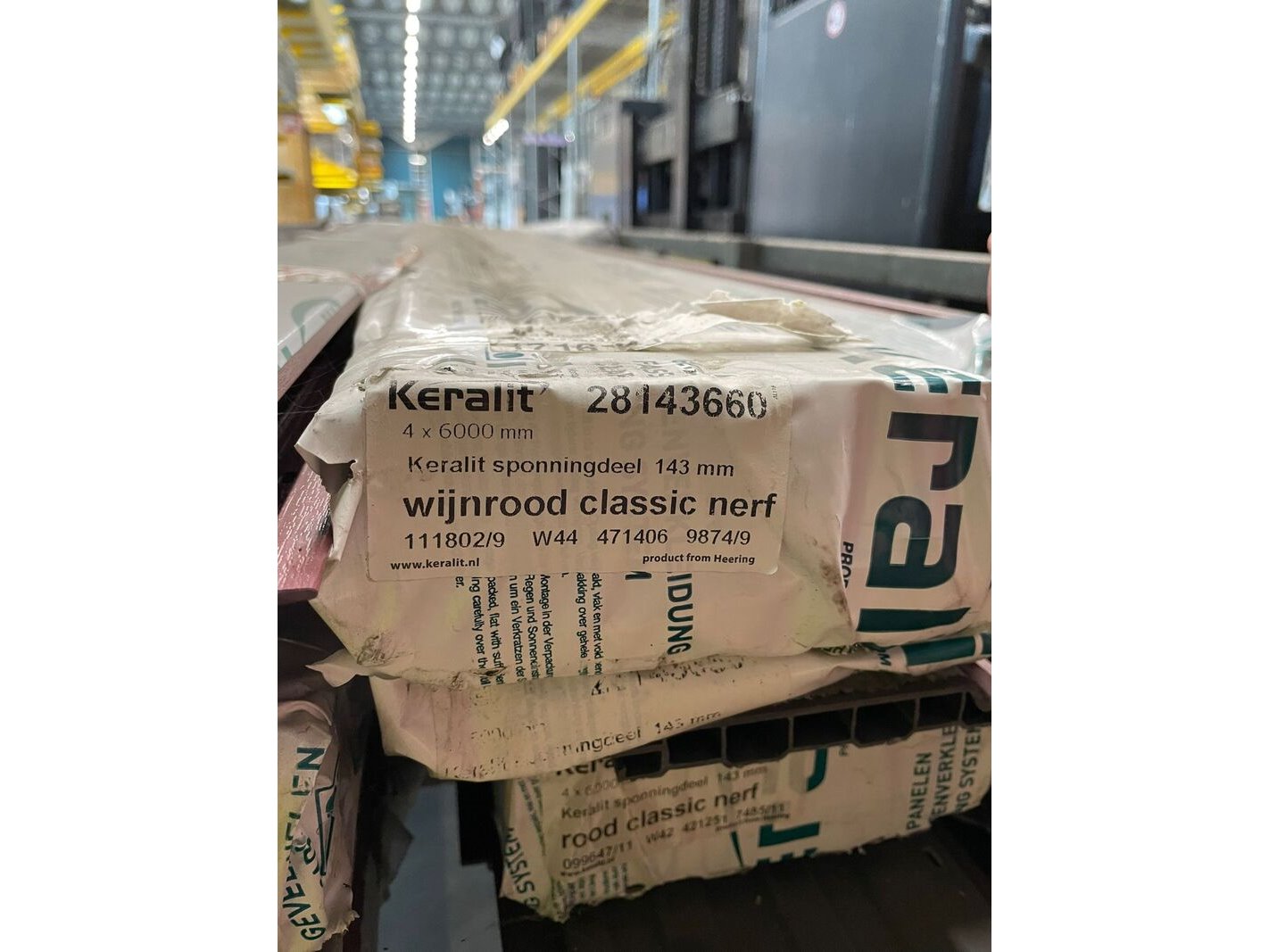 Merk: Heering Keraliet Product: Bak keraliet Kleur: wijnrood classic nerf Materiaal: kunststof composiet Afmeting: 143mm Conditie: nieuw Specificaties: Een partij keraliet in een bak, verschillende lengtes door de bak heen, komt neer op ongeveer 156 meter. De bak waar het keraliet inzit op de foto wordt er niet bijgeleverd. Meer informatie over keraliet vind u op de volgende website: https://www.heering.eu/keralit/