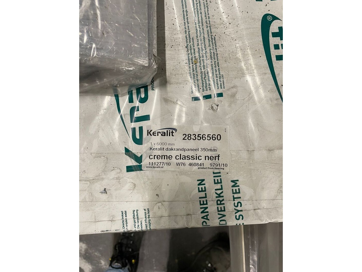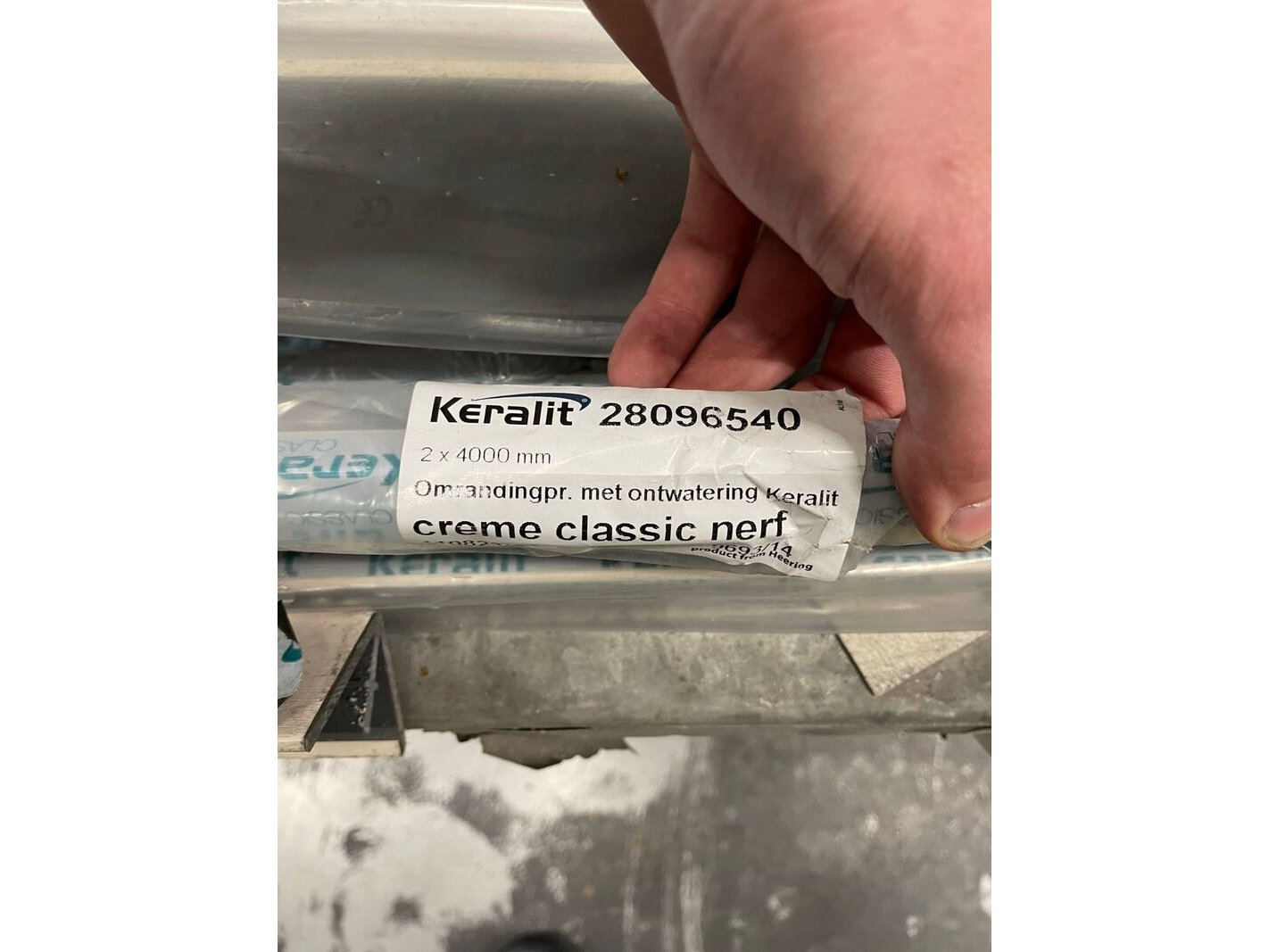 Merk: Heering Keraliet Product: Bak keraliet Kleur: creme Materiaal: kunststof composiet Conditie: nieuw Specificaties: Een partij keraliet in een bak, verschillende profielen en verschillende lengtes door de bak heen, komt neer op ongeveer 24 meter. De bak waar het keraliet inzit op de foto wordt er niet bijgeleverd. Meer informatie over keraliet vind u op de volgende website: https://www.heering.eu/keralit/