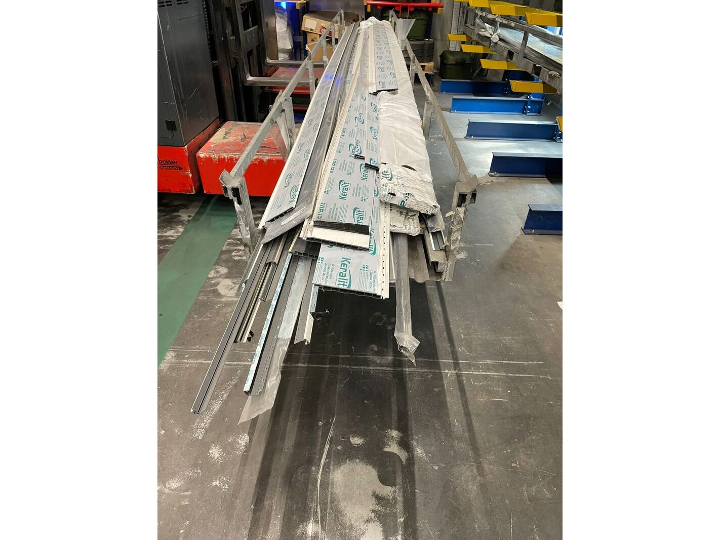 Merk: Heering Keraliet Product: Bak keraliet Kleur: classic wit nerf Materiaal: kunststof composiet Conditie: nieuw Specificaties: Een partij keraliet in een bak, verschillende profielen en verschillende lengtes door de bak heen, komt neer op ongeveer 30 meter. De bak waar het keraliet inzit op de foto wordt er niet bijgeleverd. Meer informatie over keraliet vind u op de volgende website: https://www.heering.eu/keralit/