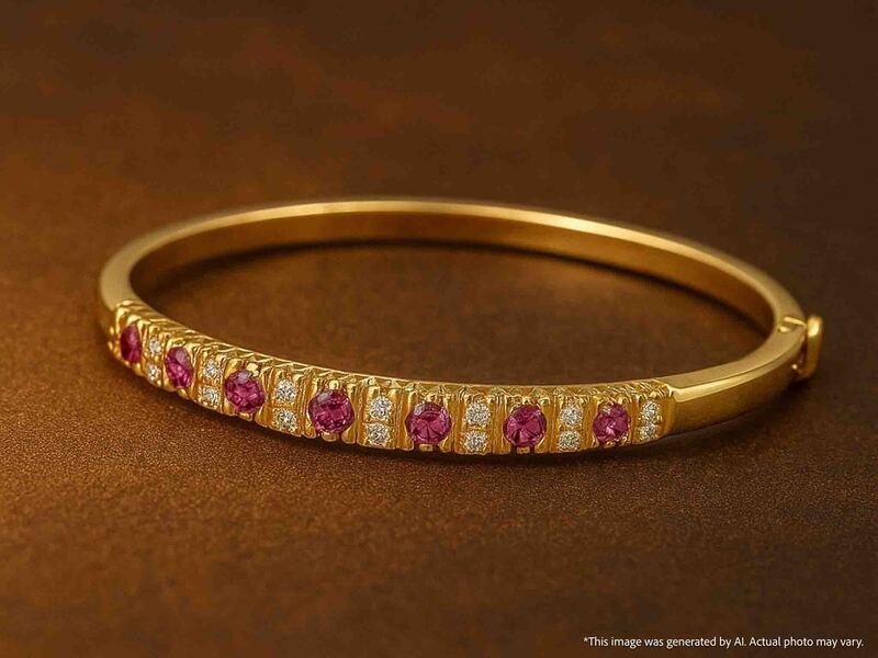 Product: Gouden armband met hoge kwaliteit natuurlijke diamanten en robijnen (gecertificeerd) Specificaties: Diamant: Natuurlijk Aantal: 18 stuks Slijpvorm: Achtkant geslepen Gewicht (carat): 0.40 carat Kleur: G-H Zuiverheid: VS Edelsteen: Robijn Aantal: 11 stuks Slijpvorm: Rond geslepen Gewicht (carat): 0.80 carat Kleur: Natuurlijk paars-rood Zuiverheid: Met natuurlijke insluitsels Juweel: Armband Gewicht: 14.1 gram Afmetingen/lengte: 6.6 x 5.3 cm Materiaal: 14 karaat (585) Conditie: Zo goed als nieuw Verpakking: Originele sieradendoos Toelichting: De kwaliteit is overgenomen van het rapport behorend bij item. De waardebepaling is een beoordeling van een gecertificeerde diamantair, gebaseerd op consumentenprijzen. Extra informatie: Komt met een NEL laboratorium certificaat E2520602. Consumentenprijs: € 13.300,-