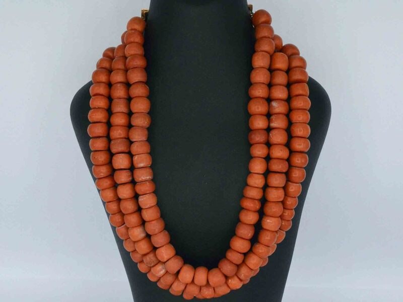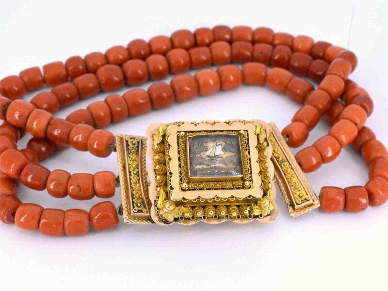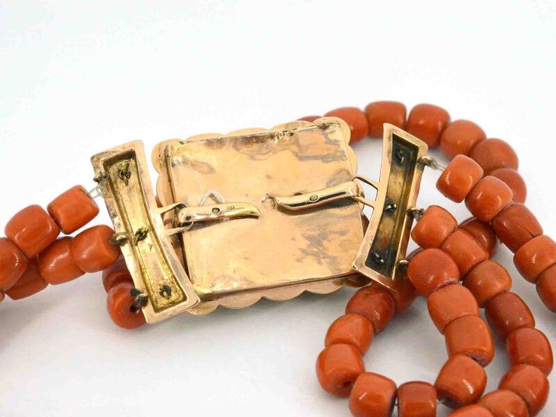 Product: Ketting van bloedkoraal met bijzondere authentieke gouden sluiting Specificaties: Edelsteen: Echt bloedkoraal Afmetingen: 11 - 12.5 mm Juweel: Collier Gewicht: 289.5 gram Afmetingen/lengte: 43,5 cm Materiaal: 14K goud (585) Conditie: Vintage Verpakking: Luxe sieradendoos Toelichting: De kwaliteit is overgenomen van het rapport behorend bij item. De waardebepaling is een beoordeling van een gecertificeerde diamantair, gebaseerd op consumentenprijzen. Extra informatie: Zeer uniek, handgemaakt slot Consumentenprijs: € 28.000,-