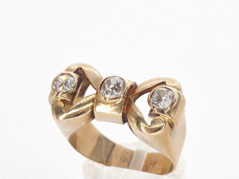Product: Rosegouden art deco ring met diamanten Specificaties: Diamant: Natuurlijk Aantal: 3 stuks Slijpvorm: old geslepen Gewicht (carat): 0.90 carat Kleur: Wit Zuiverheid: Met natuurlijke insluitsels Juweel: Ring Gewicht: 6.6 gram Ringmaat (op maat gemaakt*): 58 (18.5 mm) Materiaal: 18k goud (750) Conditie: Antiek Verpakking: Luxe sieradendoos Toelichting: De kwaliteit is overgenomen van het rapport behorend bij item. De waardebepaling is een beoordeling van een gecertificeerde diamantair, gebaseerd op consumentenprijzen. Extra informatie: Art-deco Consumentenprijs: € 7.000,-