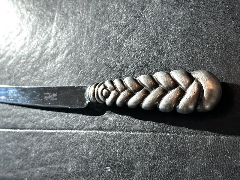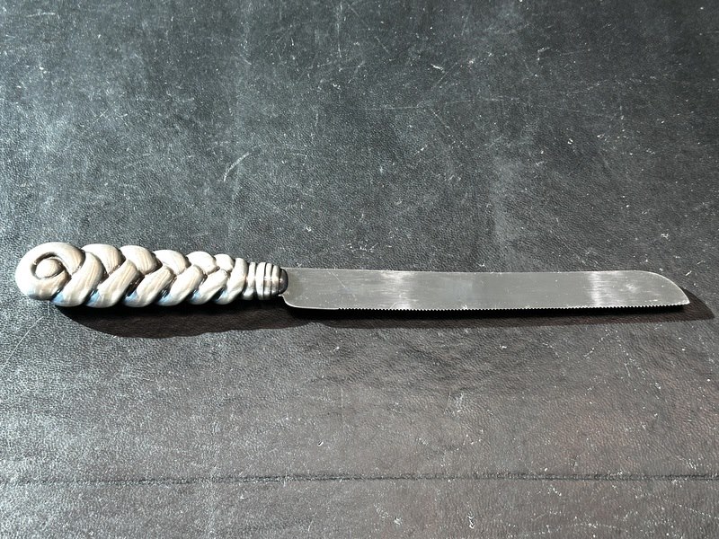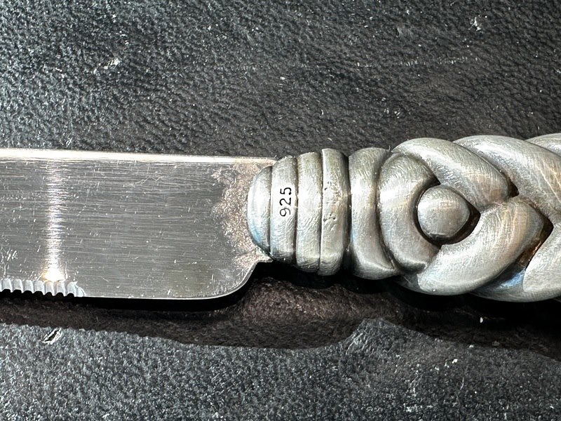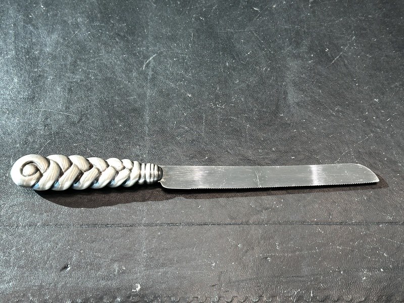 Product: Zilveren broodmes Specificaties: Juweel: Zilveren broodmes Gewicht: 100 gram Materiaal: Hoog gehalte sterling zilver Conditie: Vintage Toelichting: De kwaliteit is overgenomen van het rapport behorend bij item. De waardebepaling is een beoordeling van een gecertificeerde diamantair, gebaseerd op consumentenprijzen. Consumentenprijs: € 1.540,-