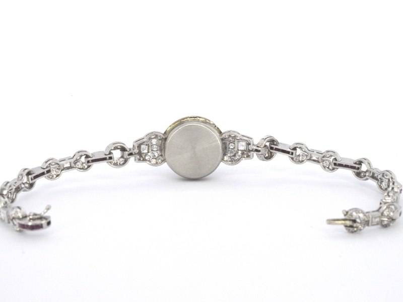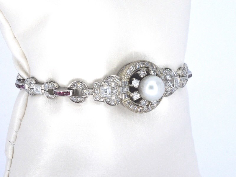 Product: Art-Deco armband met goud en platina, en natuurlijke diamanten en robijnen Specificaties: Diamant: Natuurlijk Aantal: 8 stuks Slijpvorm: Briljant geslepen Gewicht (carat): 0.40 carat Kleur: F-G Zuiverheid: VS Slijpkwaliteit: Uit de tijd geslepen Diamant (secundair): Natuurlijk Aantal diamanten: 9 stuks Slijpvorm: Carré geslepen Gewicht (carat): 1.50 carat Kleur: E Zuiverheid: VVS Slijpkwaliteit: Zeer mooi Diamant (secundair): Natuurlijk Slijpvorm: Swiss en baguette geslepen Gewicht (carat): 2.00 carat Kleur: F-G Zuiverheid: VS Edelsteen: Robijn Aantal: 24 stuks Slijpvorm: Gefacetteerd Gewicht (carat): 0.80 carat Kleur: Robijn rood - roze Zuiverheid: Met natuurlijke insluitsels Juweel: Armband Gewicht: 23.8 gram Afmetingen/lengte: 17.5 cm Materiaal: Goud en platina Conditie: Vintage Verpakking: Luxe sieradendoos Toelichting: De kwaliteit is overgenomen van het rapport behorend bij item. De waardebepaling is een beoordeling van een gecertificeerde diamantair, gebaseerd op consumentenprijzen. Consumentenprijs: € 28.000,-