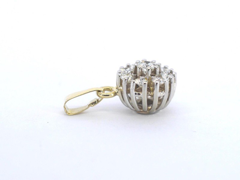 Product: Gouden hanger met natuurliijke diamanten Specificaties: Diamant: Natuurlijk Aantal: 9 stuks Slijpvorm: Briljant geslepen Gewicht (carat): 0.35 carat Kleur: F-G Zuiverheid: VVS Slijpkwaliteit: Excellent Juweel: Hanger Gewicht: 1.3 gram Materiaal: 14K goud (585) Conditie: Nieuw Verpakking: Luxe sieradendoos Toelichting: De kwaliteit is overgenomen van het rapport behorend bij item. De waardebepaling is een beoordeling van een gecertificeerde diamantair, gebaseerd op consumentenprijzen. Consumentenprijs: € 3.520,-