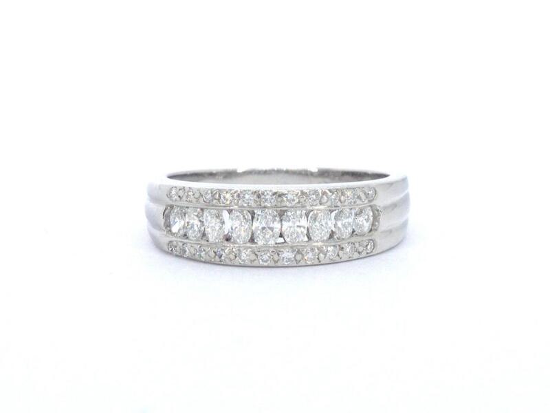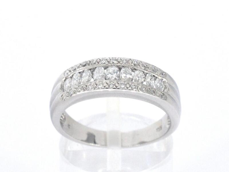 Product: Rij ring met 1.00 carat aan marquise en briljant geslepen natuurlijke diamanten Specificaties: Diamant: Natuurlijk Aantal: 9 stuks Slijpvorm: Marquise geslepen Gewicht (carat): 0.80 carat Kleur: F Zuiverheid: VS Slijpkwaliteit: Zeer mooi Diamant (secundair): Diamant Aantal diamanten: 22 stuks Slijpvorm: Briljant geslepen Gewicht (carat): 0.20 carat Kleur: F Zuiverheid: VS Slijpkwaliteit: Zeer mooi Juweel: Ring Gewicht: 4.6 gram Ringmaat (op maat gemaakt*): 54 (17.25 mm) Materiaal: 18k goud (750) Conditie: Zo goed als nieuw Toelichting: De kwaliteit is overgenomen van het rapport behorend bij item. De waardebepaling is een beoordeling van een gecertificeerde diamantair, gebaseerd op consumentenprijzen. Consumentenprijs: € 8.000,-