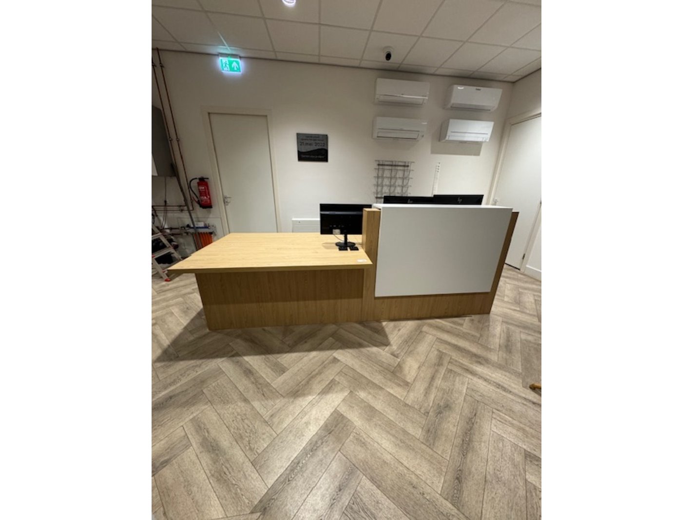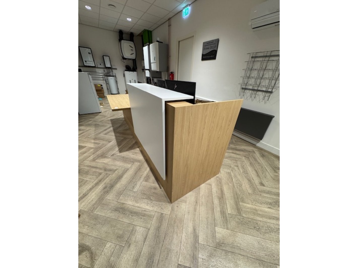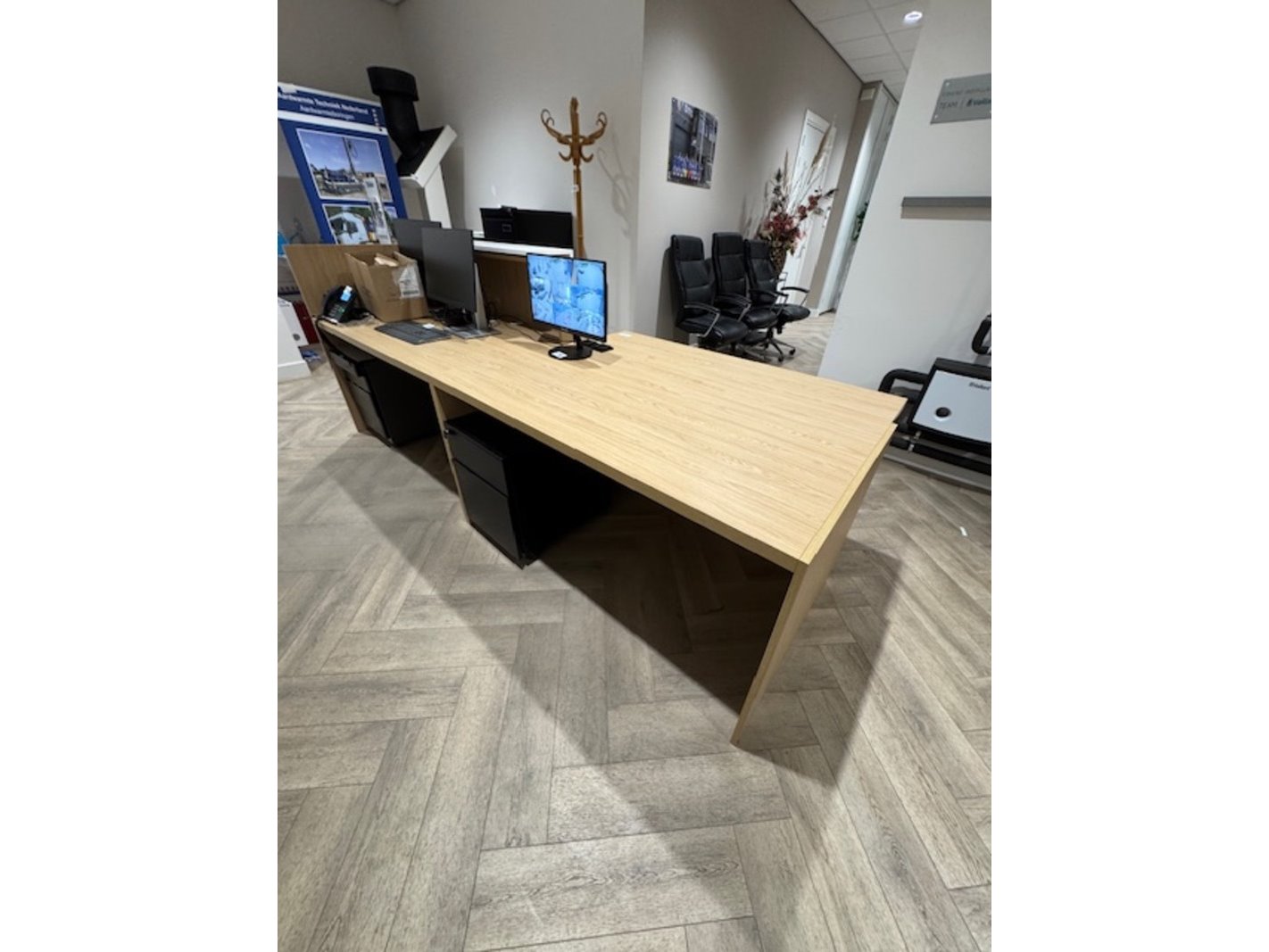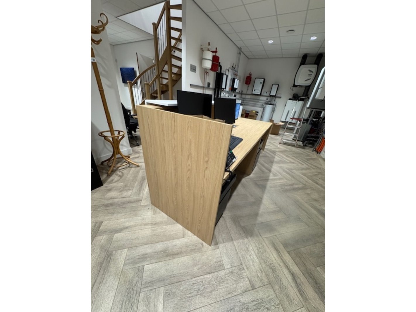 Product: Balie Kleur: eiken look Afmeting: (lxbxh) ca.287 x 113/87 x 73/113 cm Specificaties: met verrijdbare ladenblokken