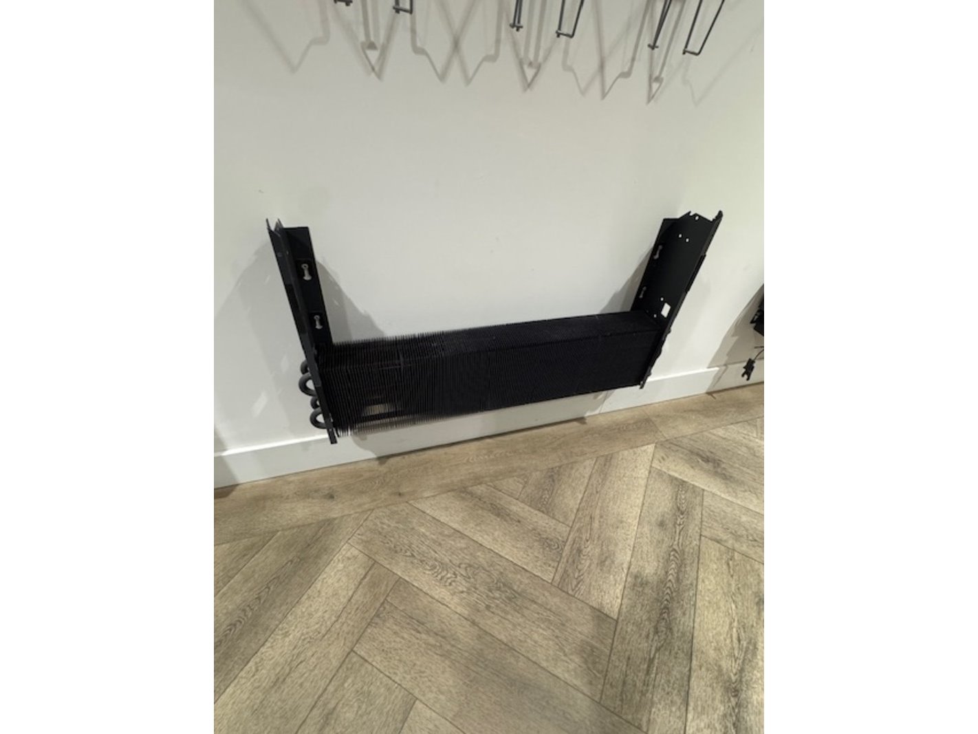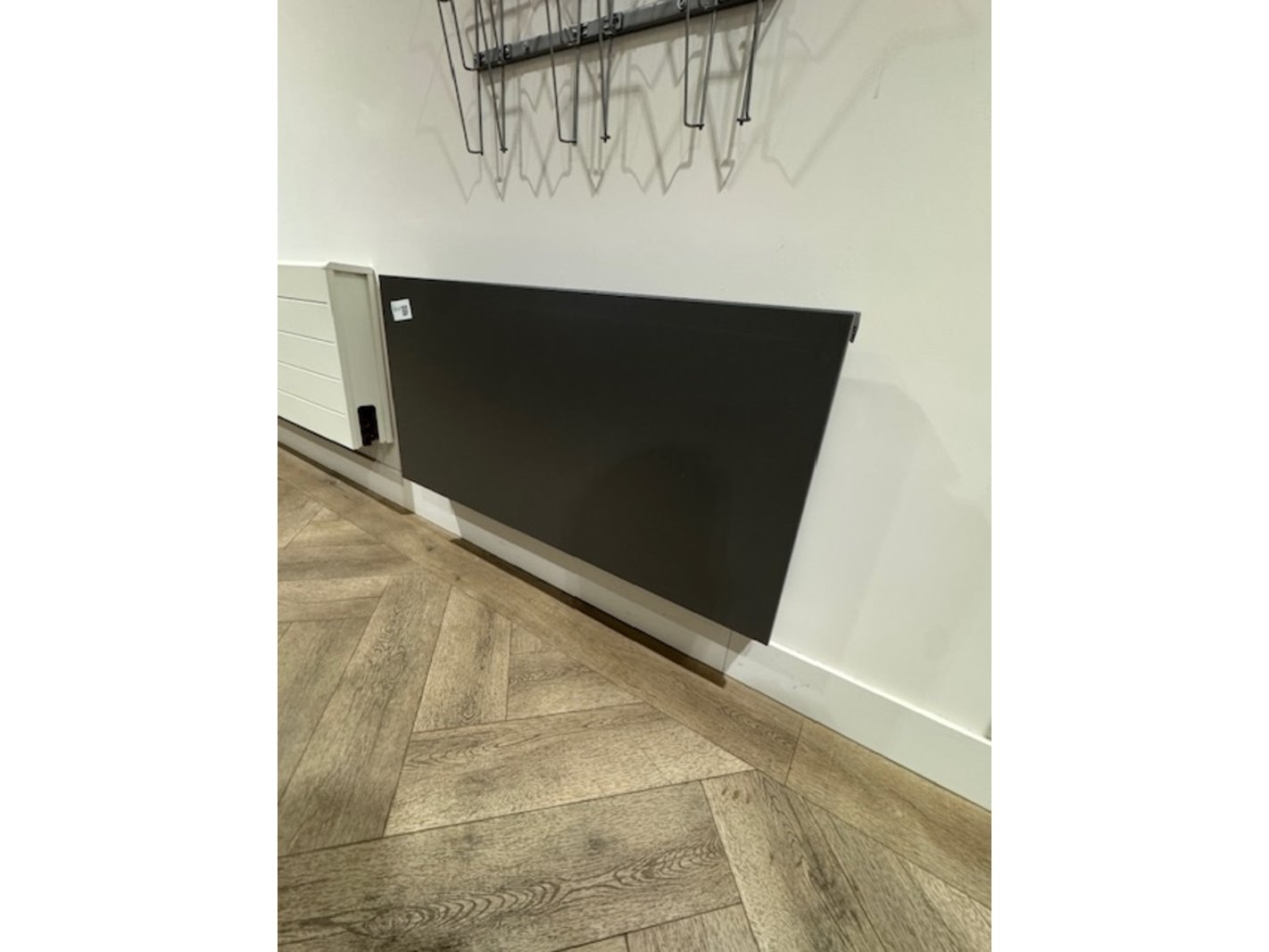 Product: Convectorradiator Kleur: antraciet Afmeting: (hxbxd) ca.50 x 100 x 12 cm Specificaties: demo model, bevestigd aan de muur