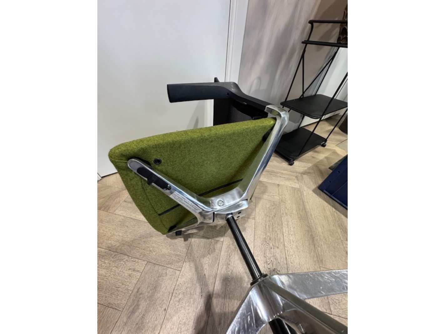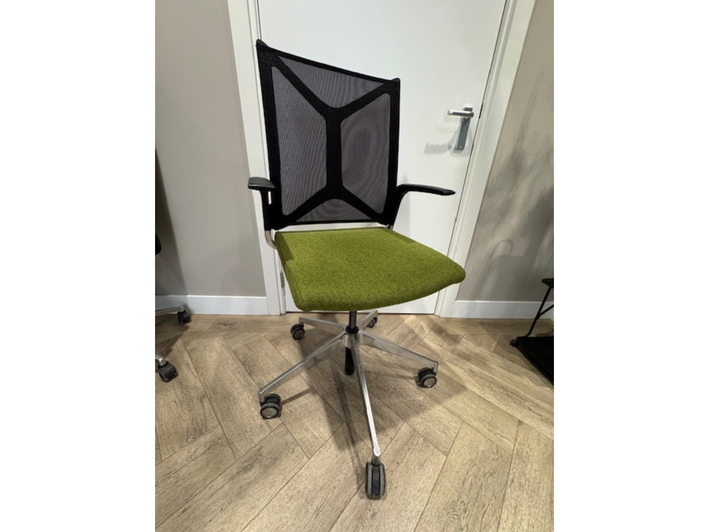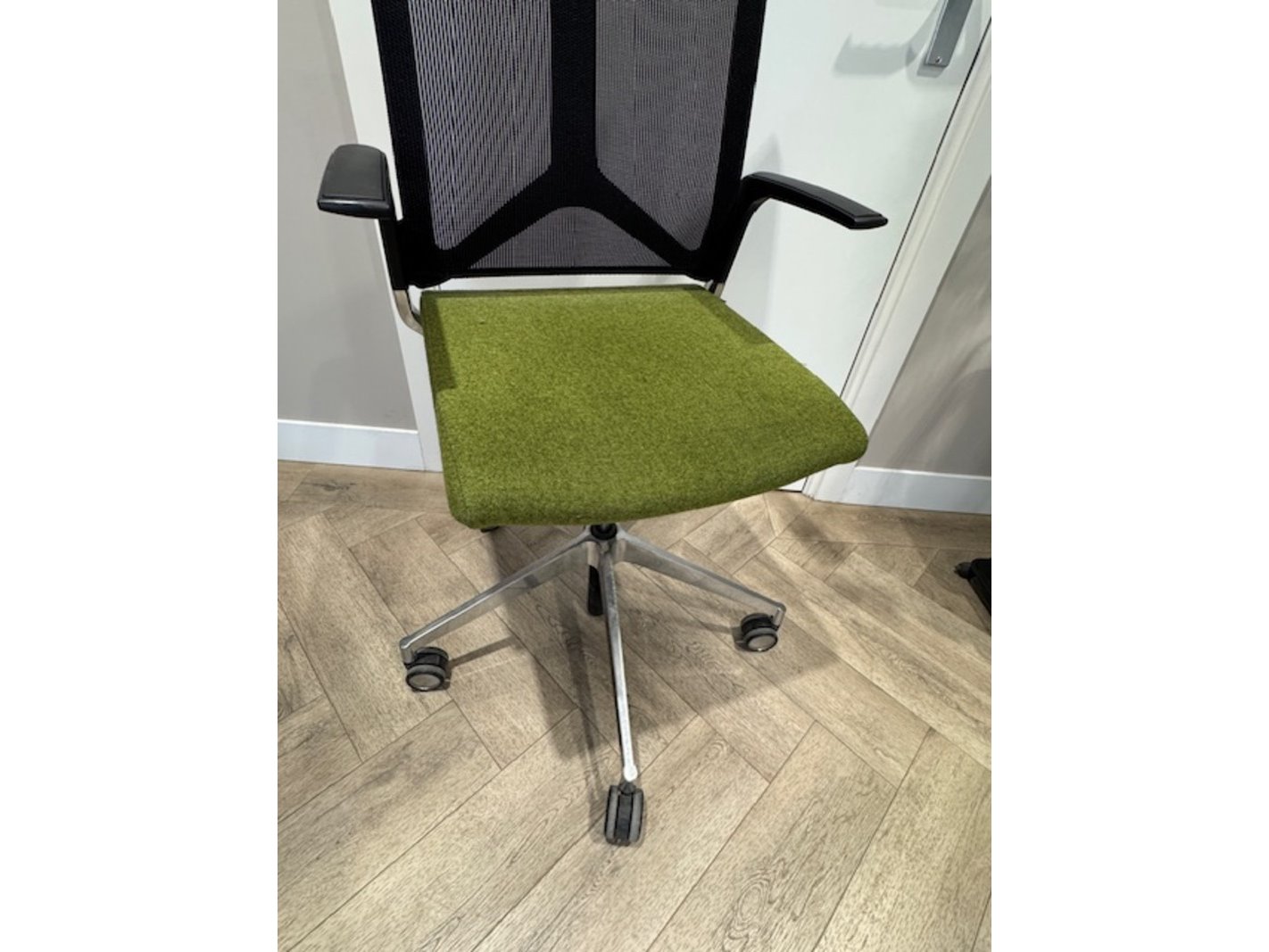 Product: Bureaustoel Kleur: groen Materiaal: chroom.vilt