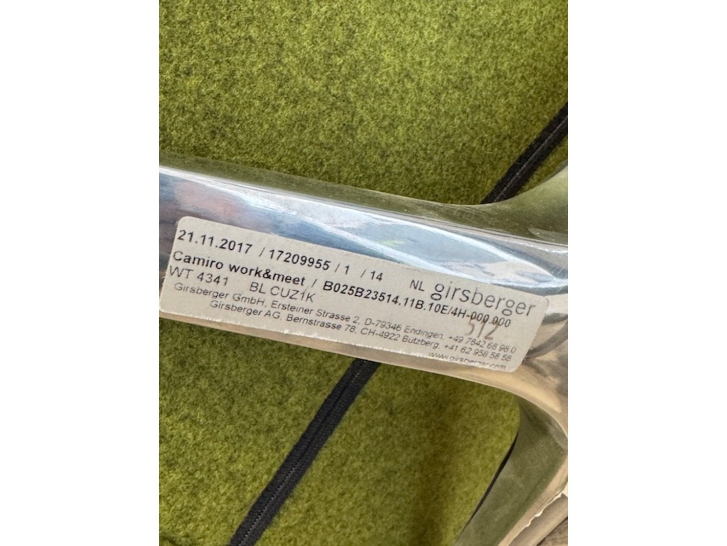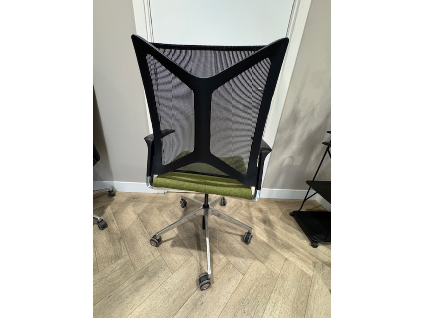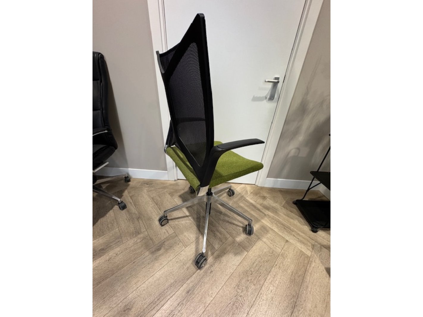 Product: Bureaustoel Kleur: groen Materiaal: chroom.vilt