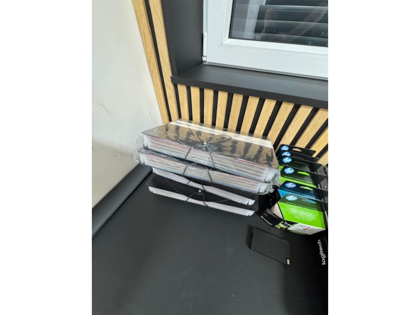 Product: Assortiment computer en kantoor artikelen Specificaties: Bestaande uit o.a.: toetsenborden, cartridges voor printer HP, monitor voeten, bekabeling, etc.