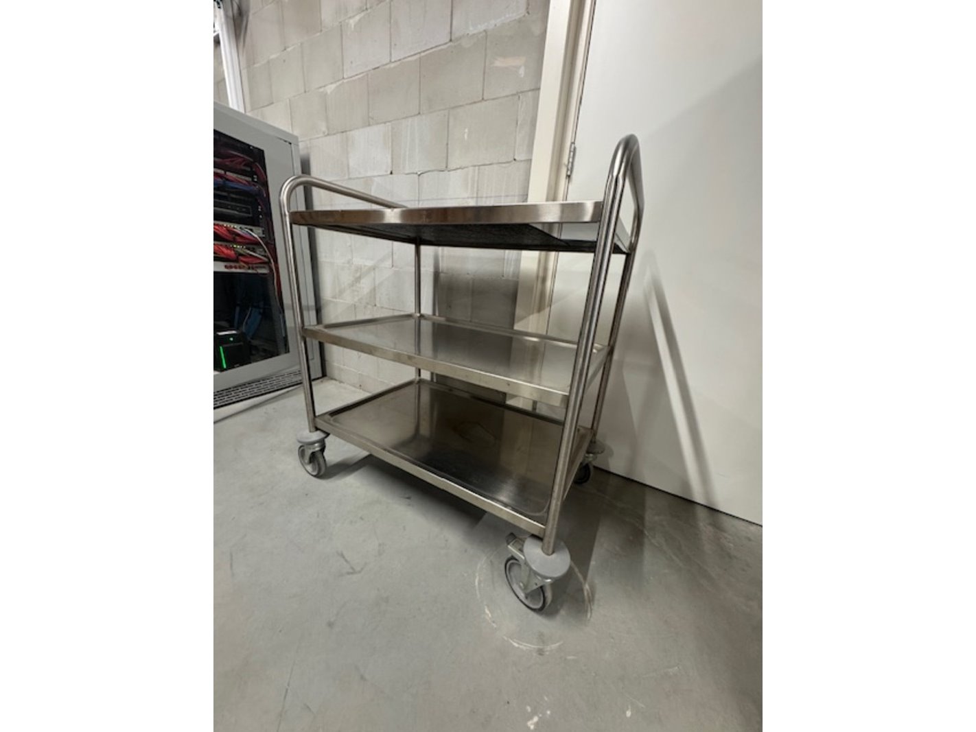 Product: Serveerwagen Materiaal: RVS Afmeting: bxdxh ca. 82x50x92cm