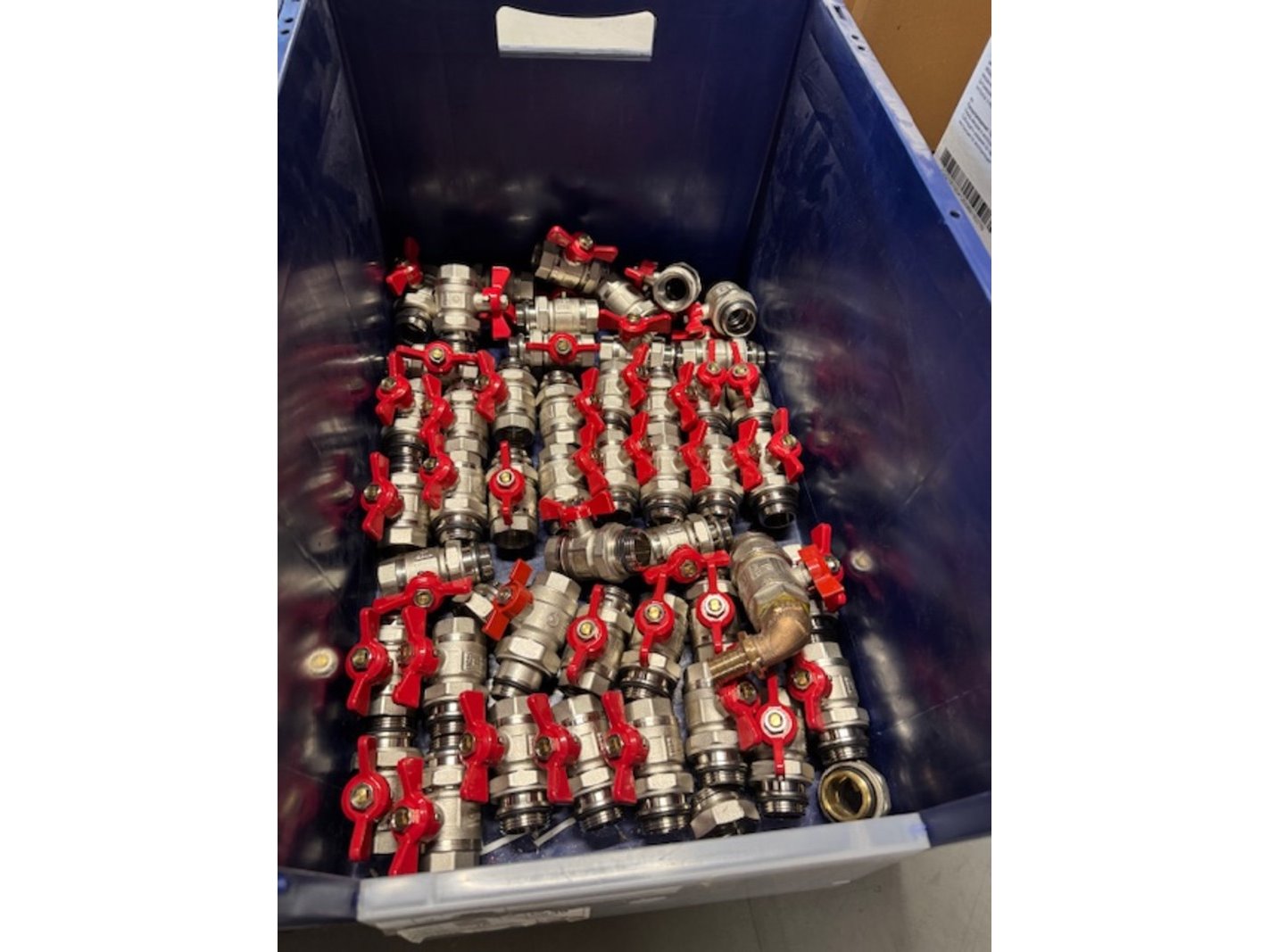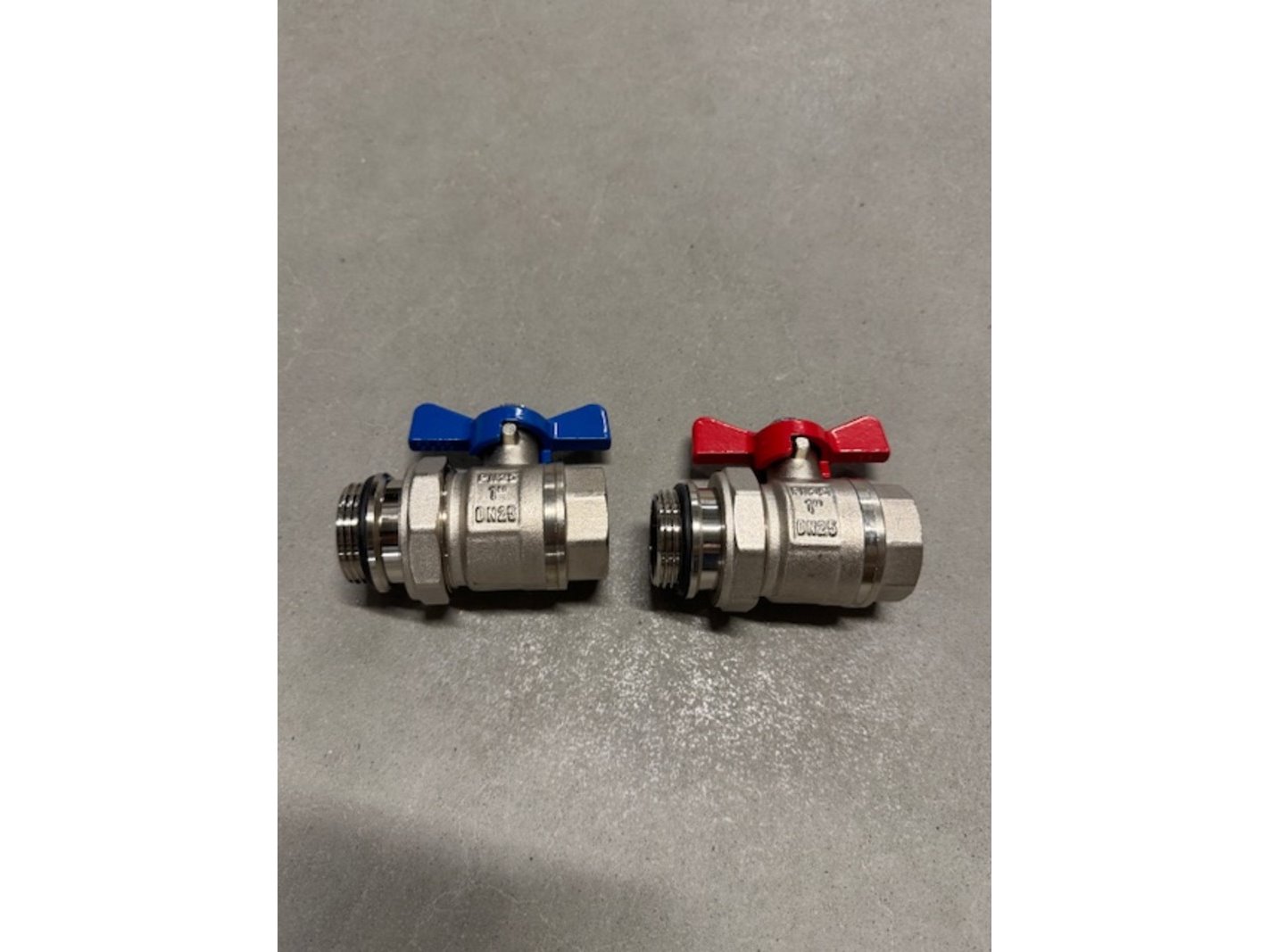 Product: Kogelkraan Kleur: rood en blauw Materiaal: messing Afmeting: 1"x1" Specificaties: recht staarstuk
